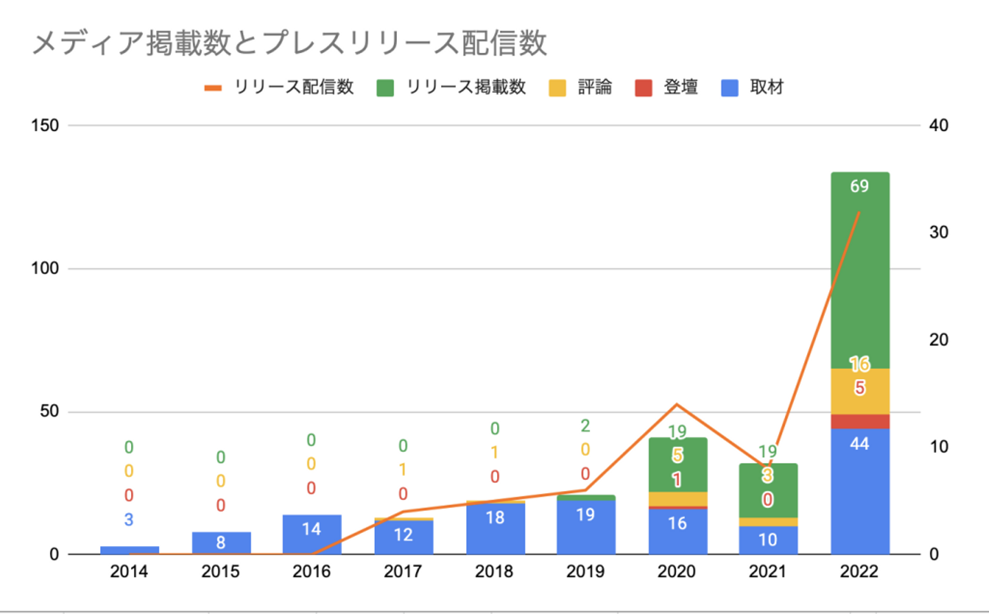 というのもそのはず、振り返るとメディア掲載全体では2022年はすでに130件超となっていました。プレスリリースが直接メディアに掲載される数は、配信数からすると昨年からは微増というところでしたが、取材件数は例年の2〜3倍ほどに。なるほど、忙しいわけです。