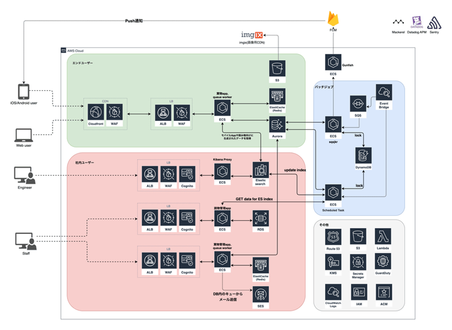 ElasticsearchやPush通知基盤(Gunfish, FCM)まわりはインフラ改善の一環ではなく、モバイルアプリのリリースに合わせて導入されたものになります。この記事では詳細を割愛させていただきますが、参考ブログのリンクを記載します。