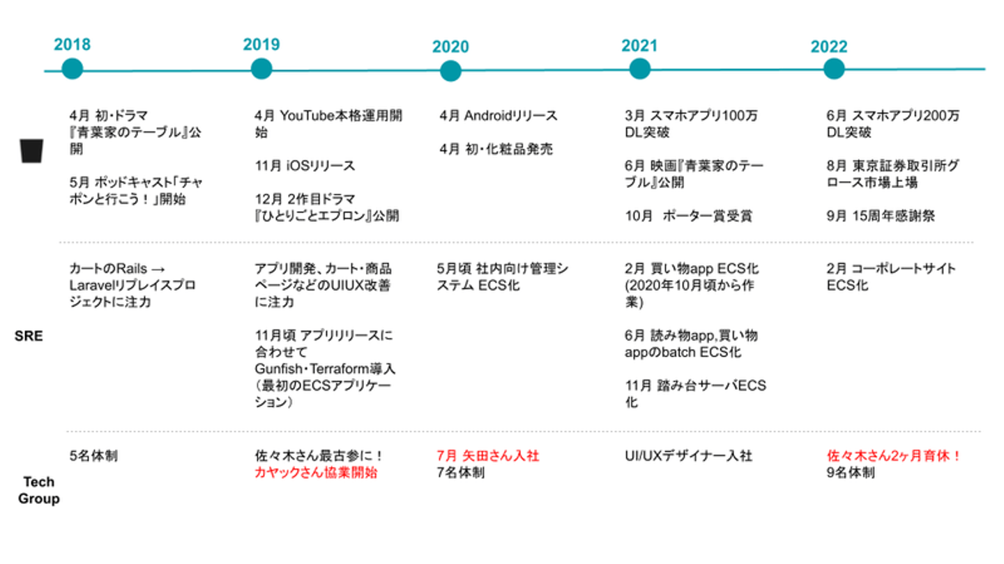 ミートアップで公開した組織年表