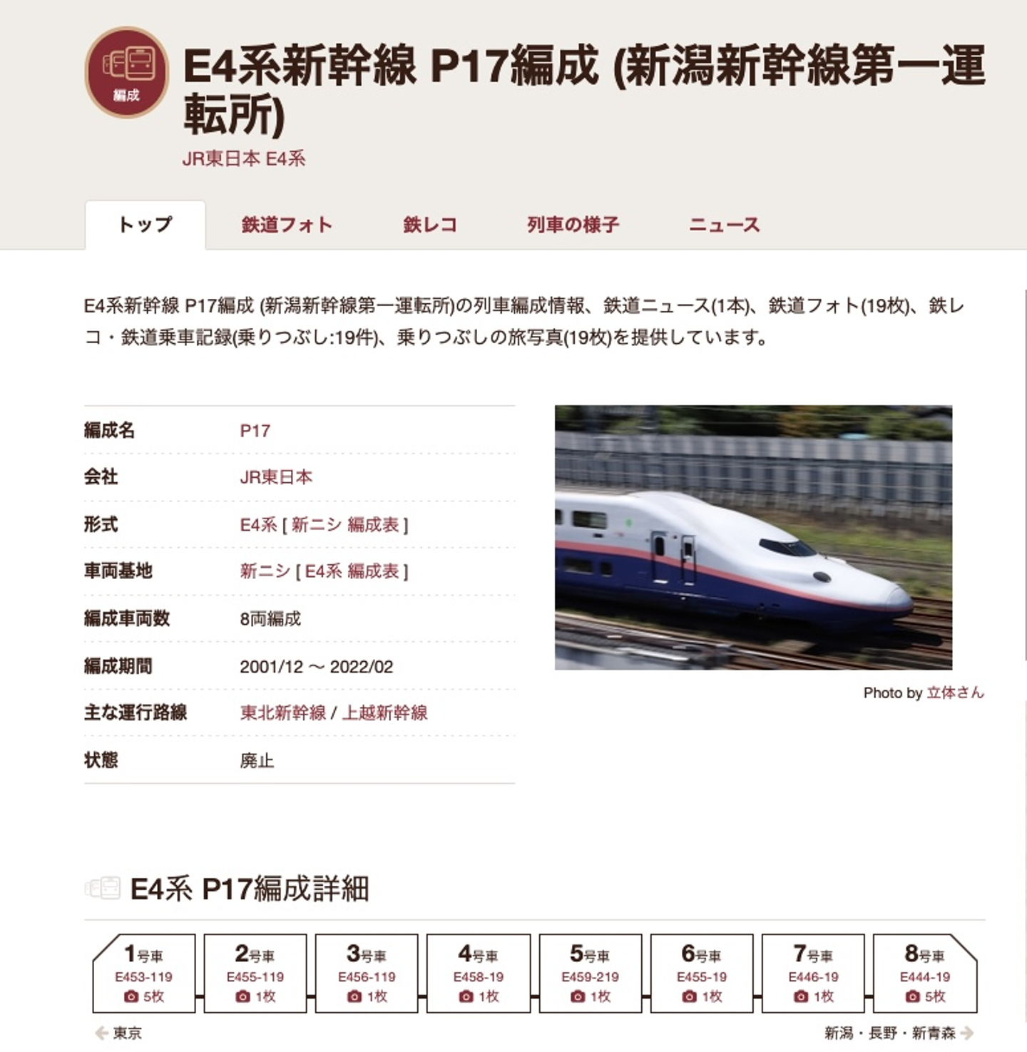 この座席は、E4系の「P17編成」 のものなのですが、レイルラボではもちろん、この車両データも登録されています。