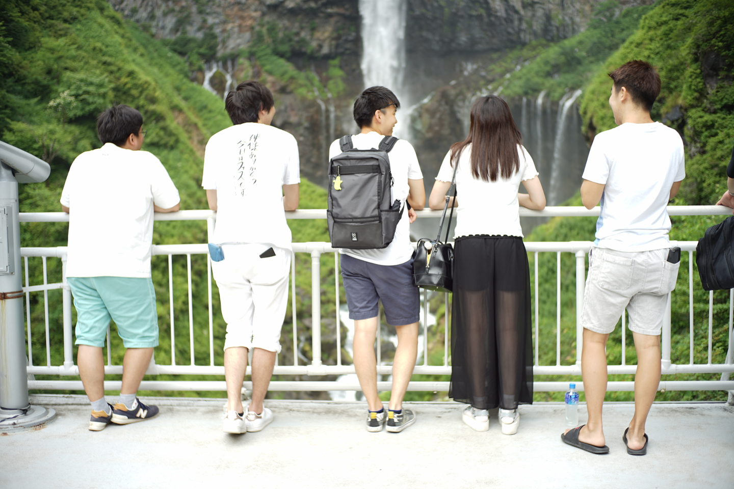朝食を食べ終えてチェックアウトしたあと、一行が向かった場所は、日本三大瀑布の一つ、「華厳の滝(けごんのたき)」。