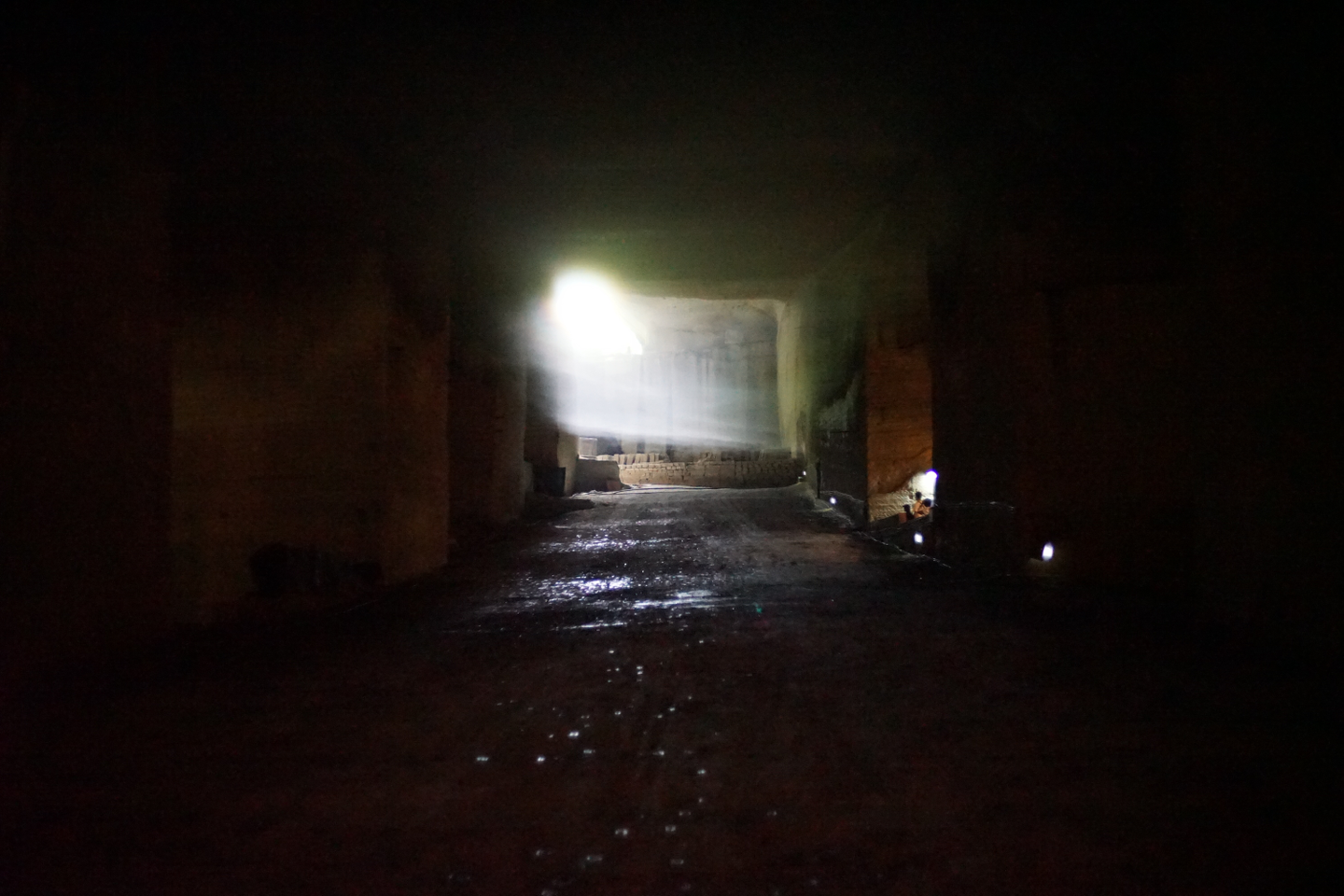 次に訪れたのは、「大谷資料館」。この地下に広がる巨大なダンジョンは、元々、大谷石の採石場後を整備して作られた採掘に関する博物館です。まるで地下神殿のような空間にワクワクが止まりませんね。