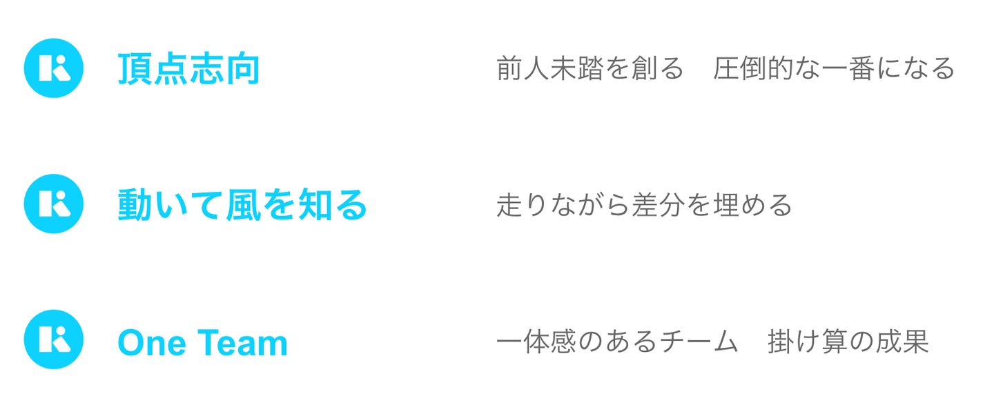 Kyashメンバーが働く上で大切にするべきものは何か?を示すValueを考えました。