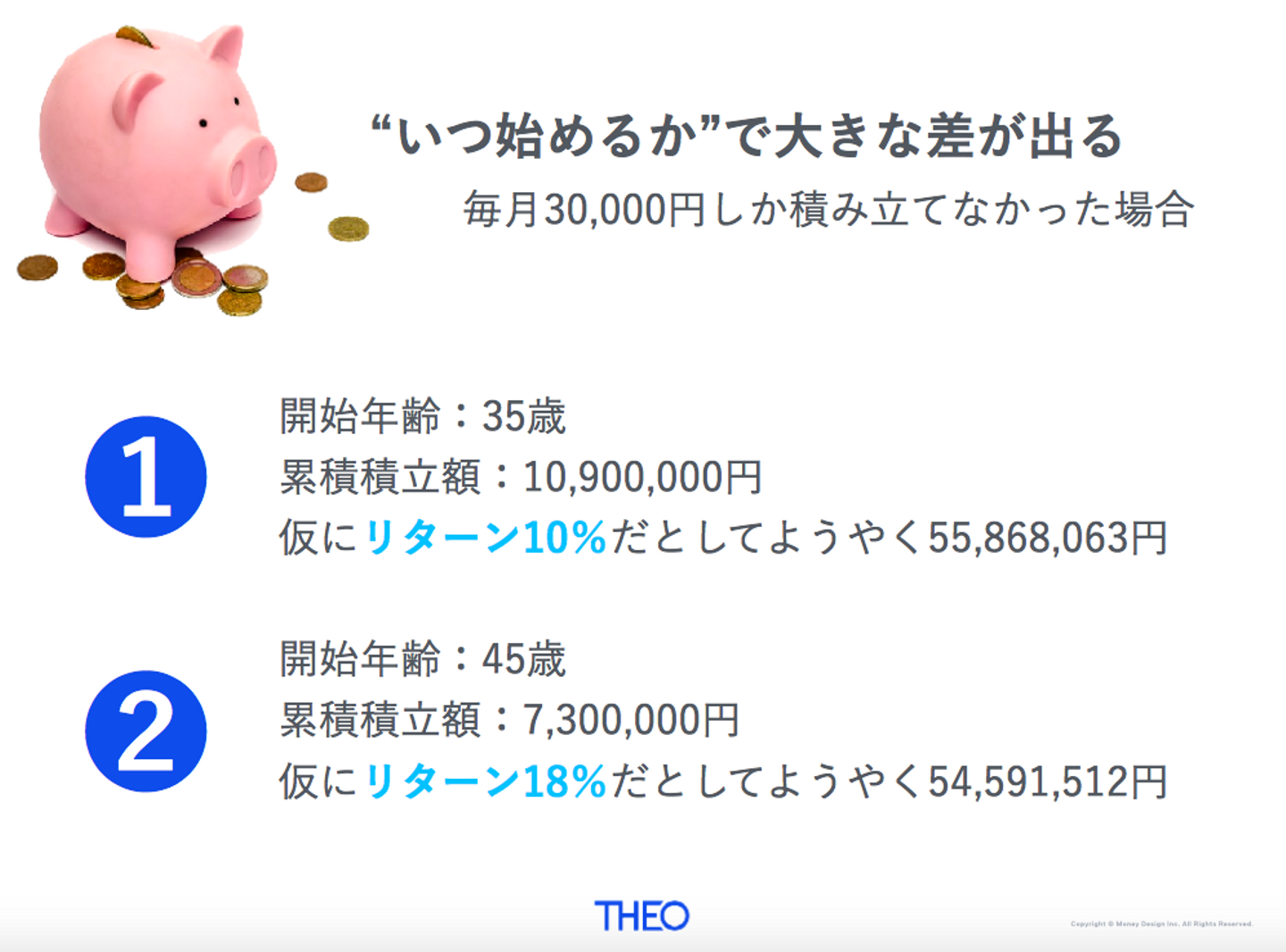 ■THEO「人生100年時代、20代で大きな差がつく資産運用」