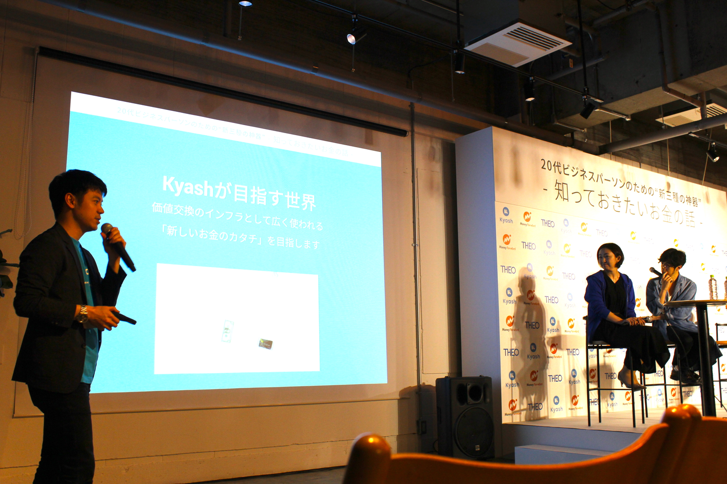 続いて各社から、新・お金の三種の神器のご紹介と、西野さんとのパネルディスカッションが行われました。トップバッターはKyash代表鷹取より。