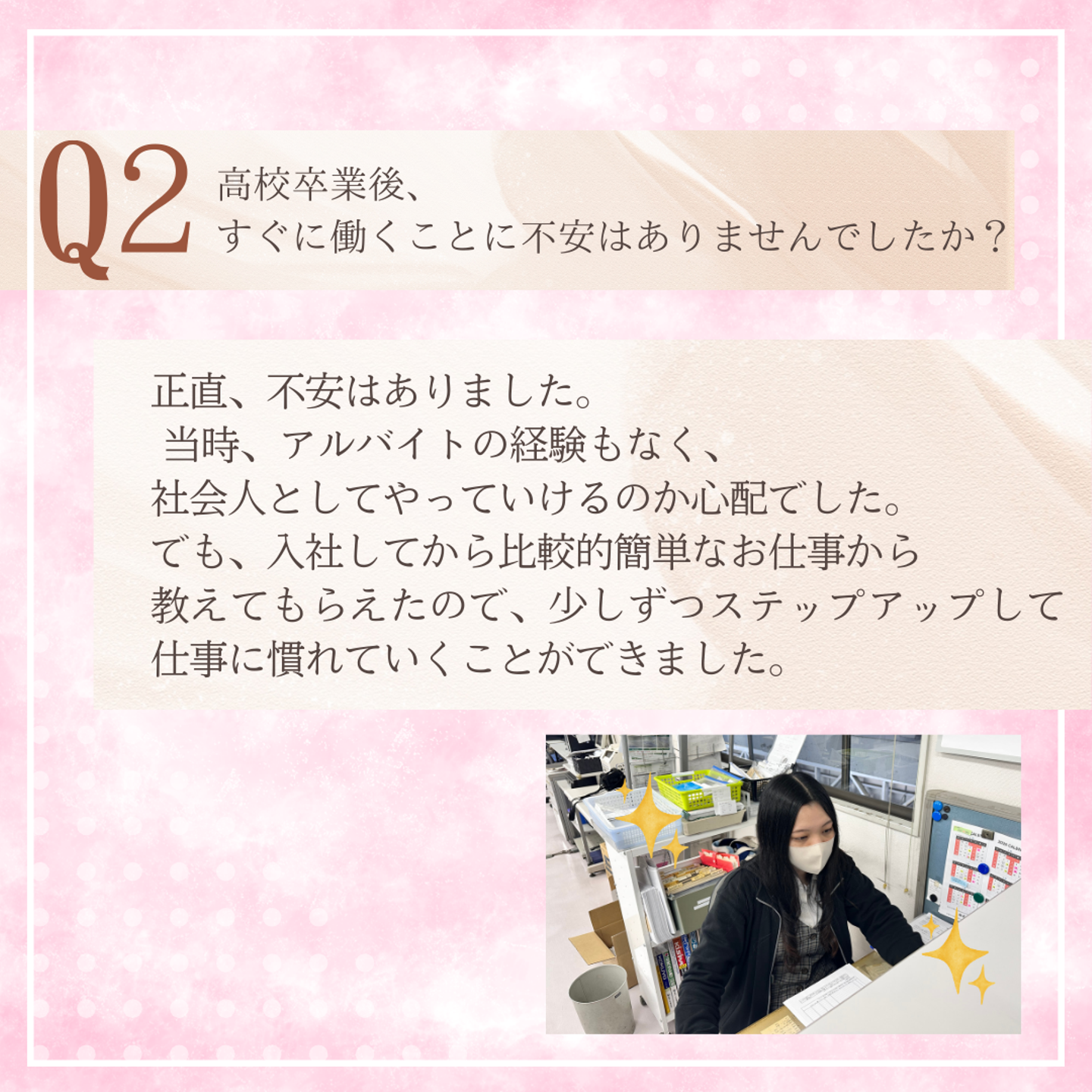 「最初は誰でも不安やと思うけど、ここなら大丈夫やで!」