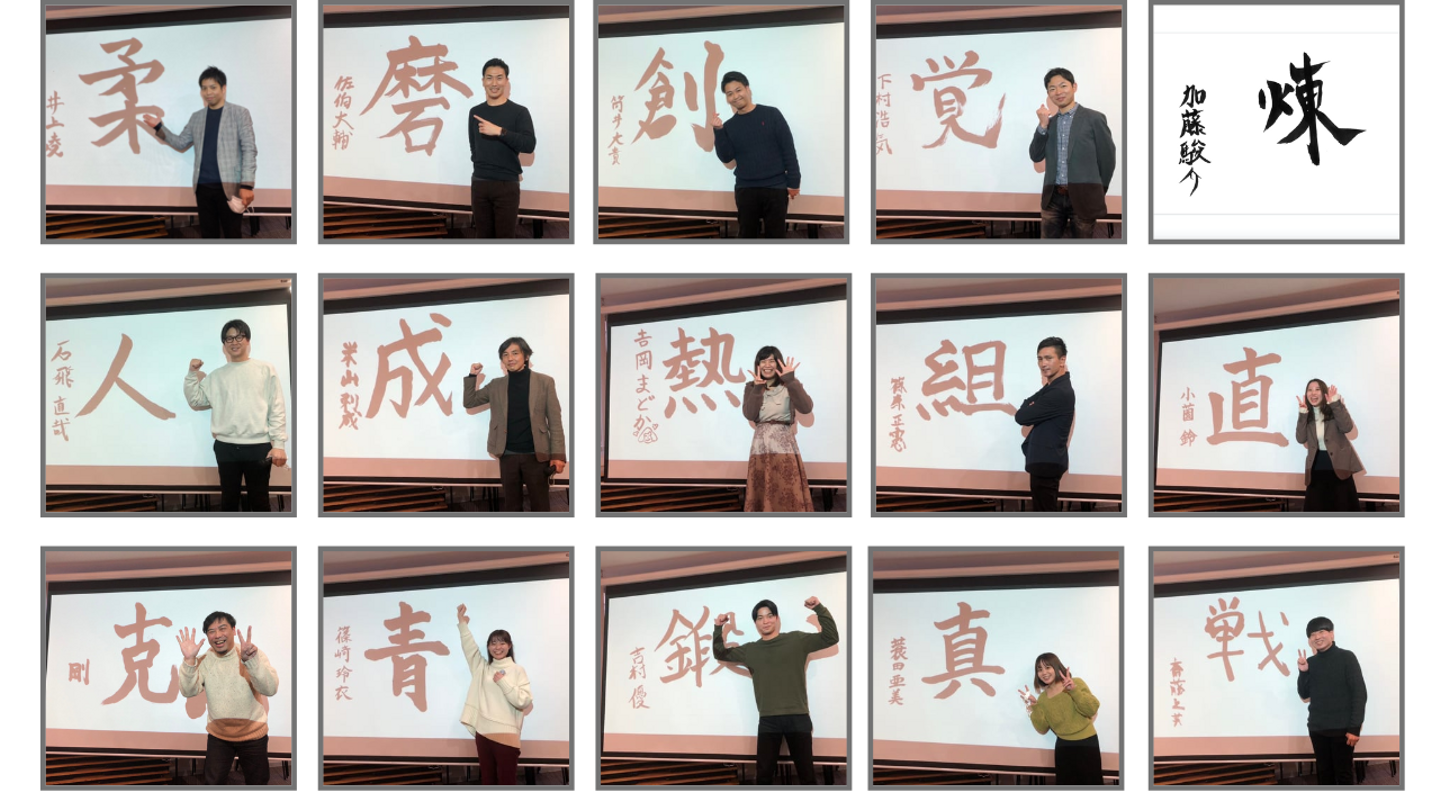 当日は、入社順に今年の漢字と併せ、決意表明として一年の抱負を発表してもらいました!個性溢れる一文字と気合の入った抱負に、どのメンバーに対しても拍手喝采でした。