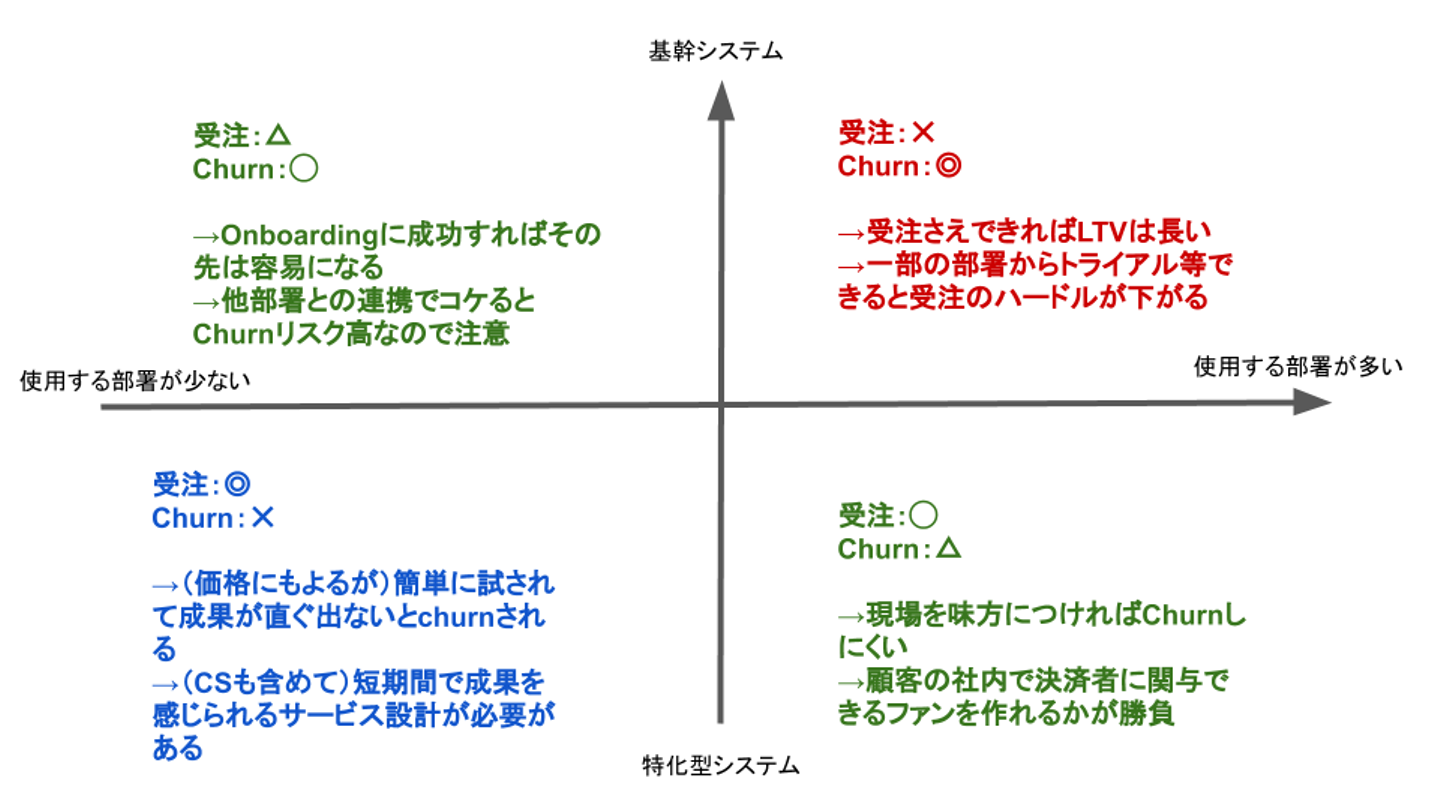 ここで考えるのは「受注のしやすさ」と「Churnのしやすさ」です。