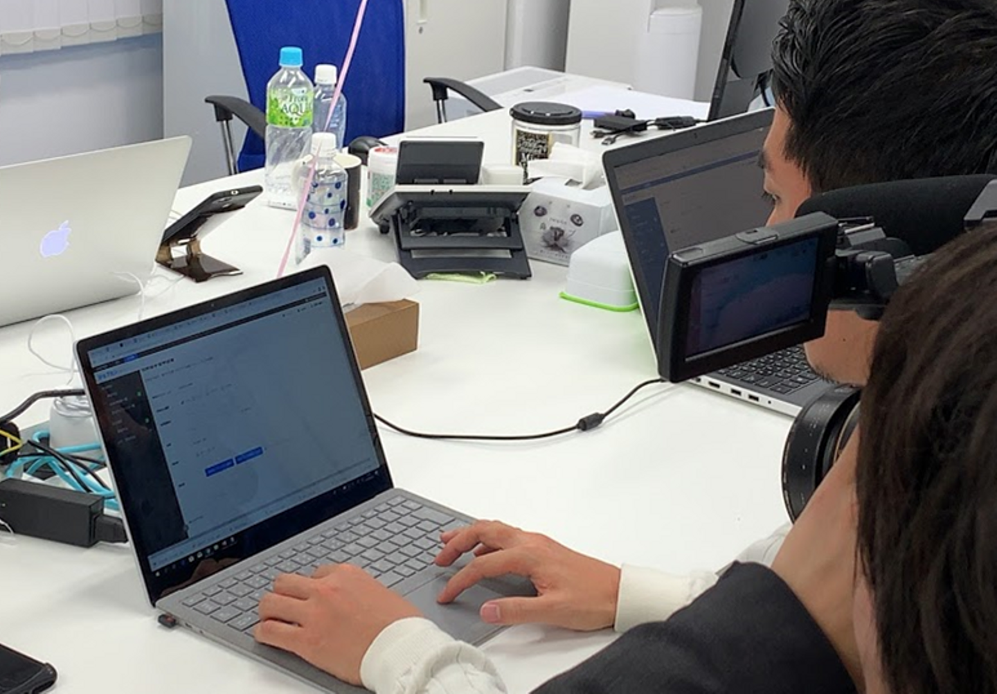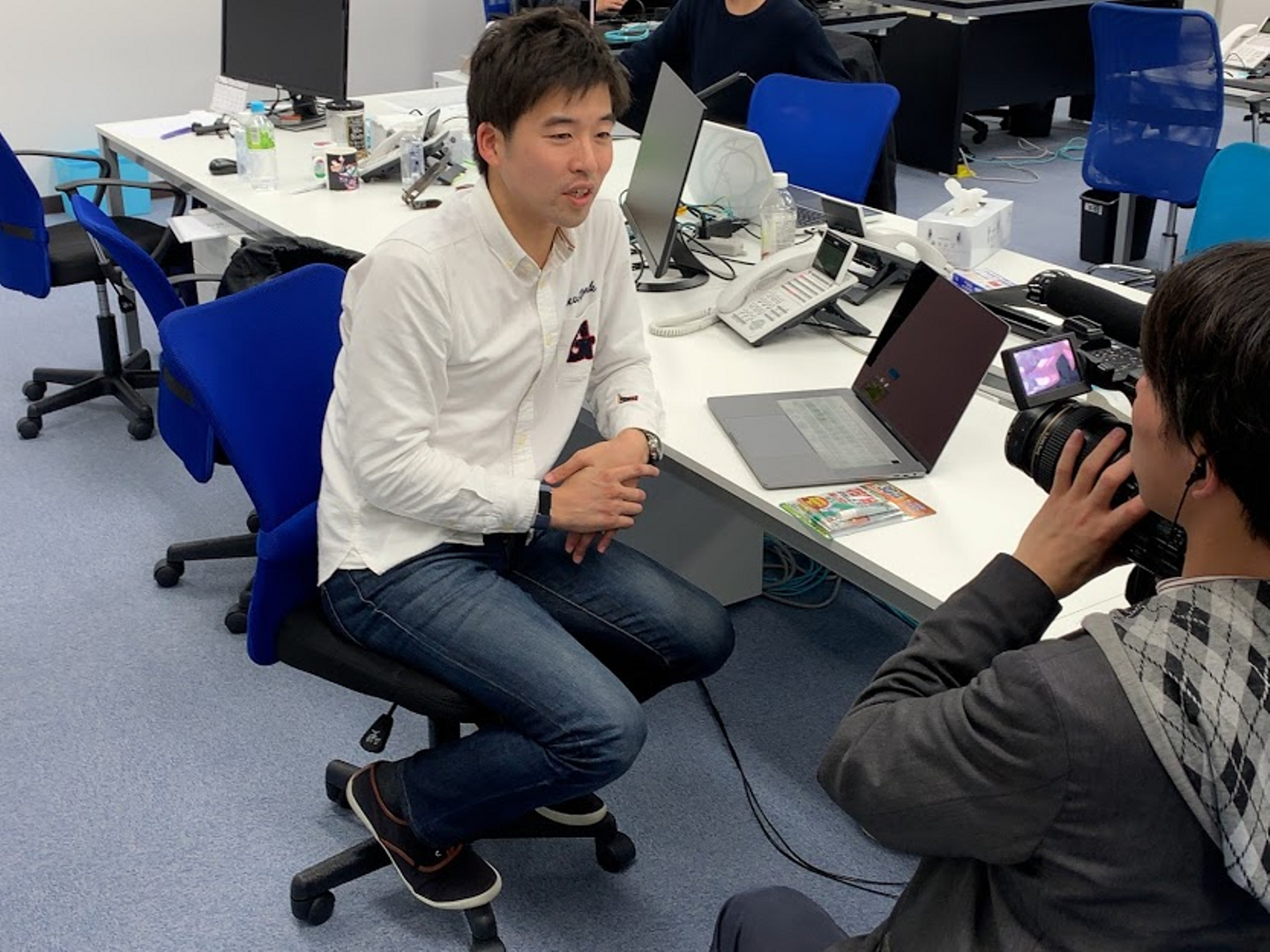 ▼撮影の様子②(花粉症手当申請メンバーインタビューの様子)