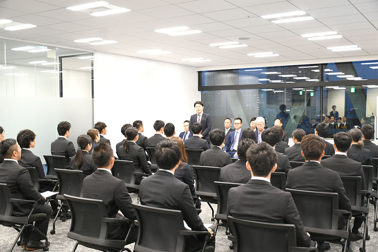 これから社会人になる内定者の皆さんに向けて『仕事をする上で、今までとは違い『働きながら勉強をする』こと。その“勉強”というのは不動産のことや計算等の技術的な所と、人を巻き込む力、リーダーシップなどチームとして大切な所。この2つを学んでいくことを明確にしてほしい』とお話されました。