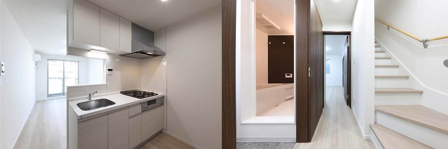 また、オーナー様の希望で今まではなかった水廻りを各戸に設置しファミリーでも快適に住める41.00㎡前後の3部屋のメゾネットへと生まれ変わりました。