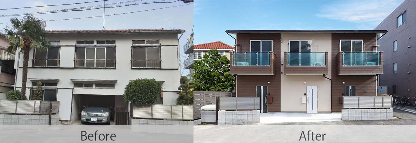 今回リノベーションした物件は、築年数45年、120.08㎡の6所帯のアパート。