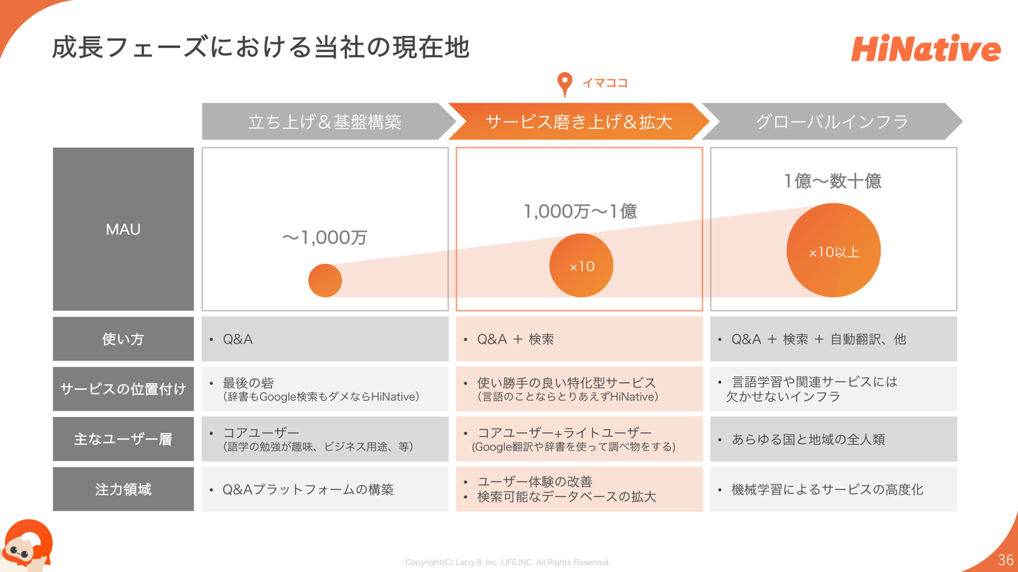 もっとも伝えたかったのはHiNativeとは何なのや目指すべき規模感です。