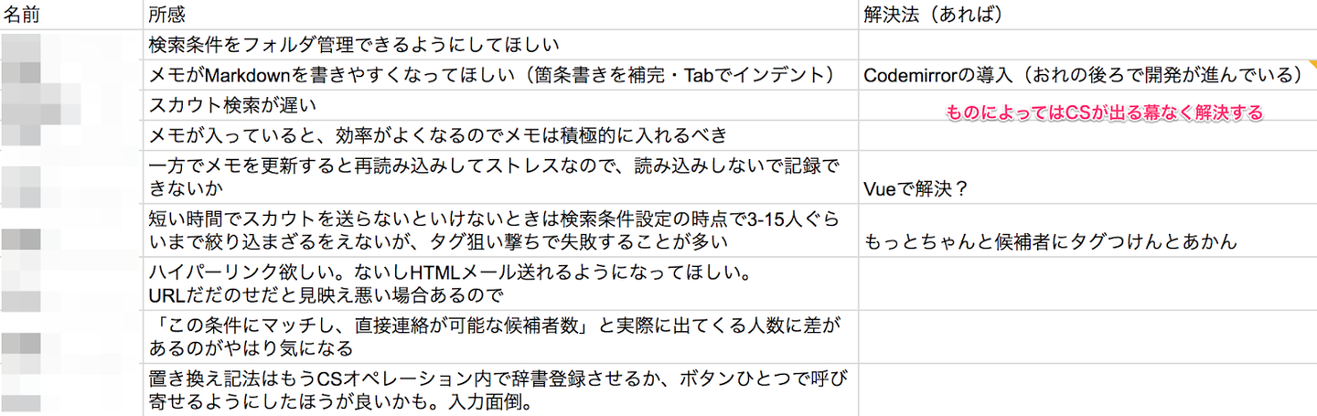 カスタマーサクセス担当者からすると、その時間は情報が湧き出る魅惑の時間で、「誰が、どういったところで行き詰まるのか」「どういったところに不満を覚えるか」「こういう機能やサポートが欲しい」といった情報がわんさかでてきます。
