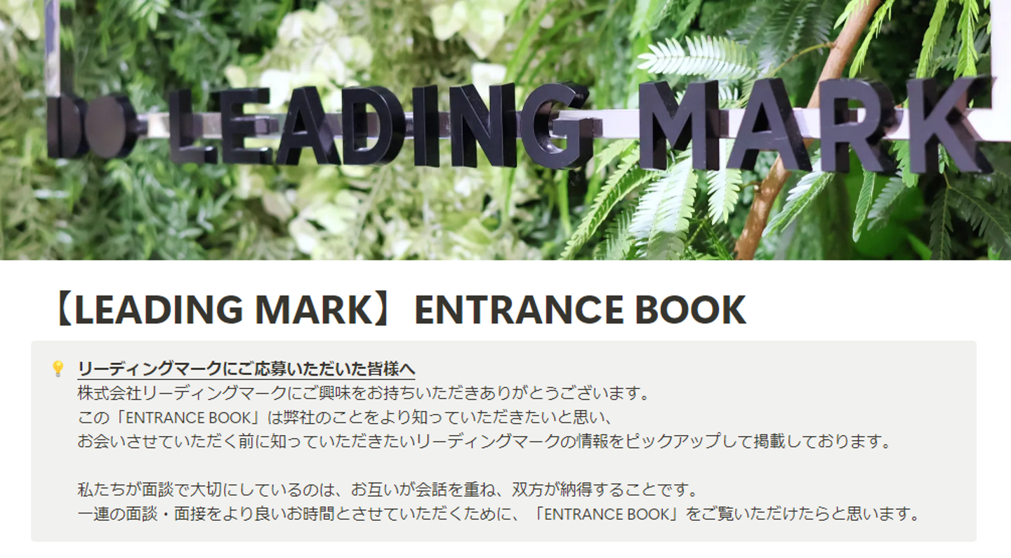 「短時間でリーディングマークを知ってもらい、候補者様の検索負担を減らしたい」と、採用の候補者様向けに作成しました!