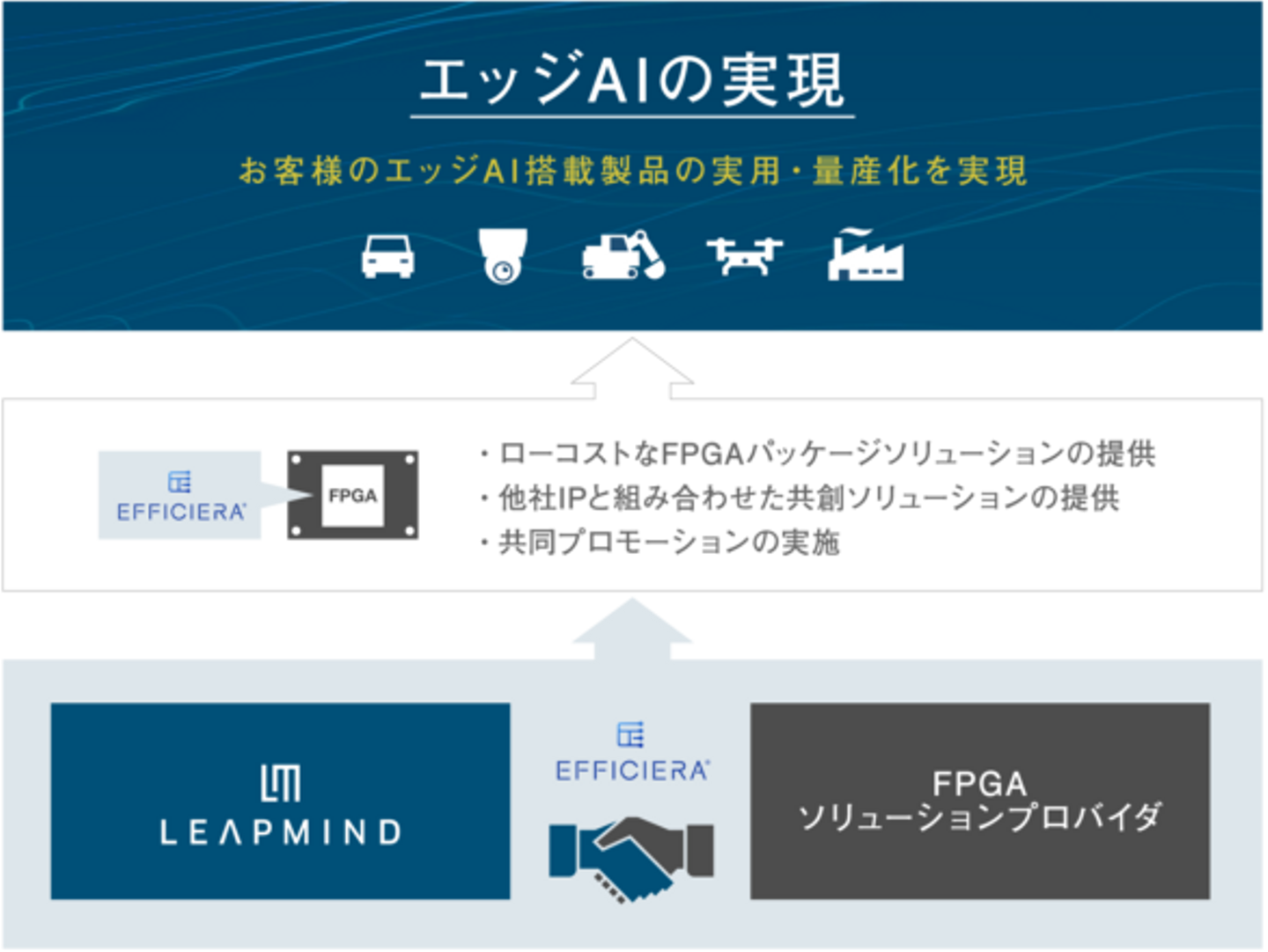 LeapMindは「顧客課題を解決可能なAI搭載製品・ソリューションの共創」を目的とするEfficiera FPGAパートナープログラムを提供しています。