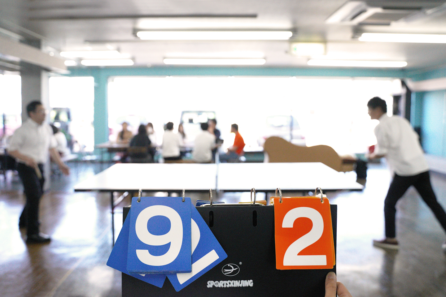 元卓球部という事もあり、事務所フリースペースには卓球台があります。