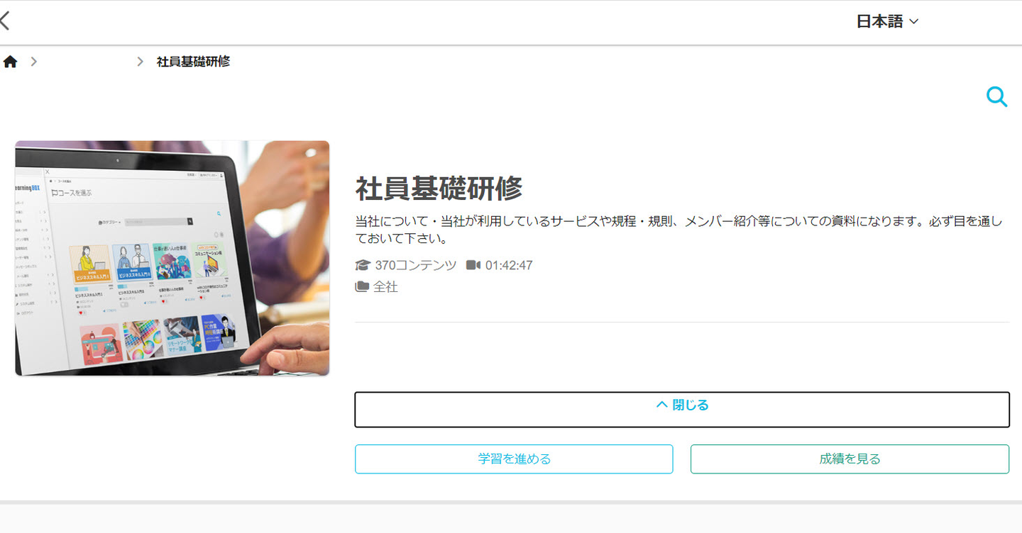 当社サービスlearningBOXを使って「社員基礎研修」を受けていきます。