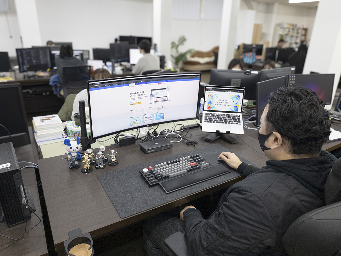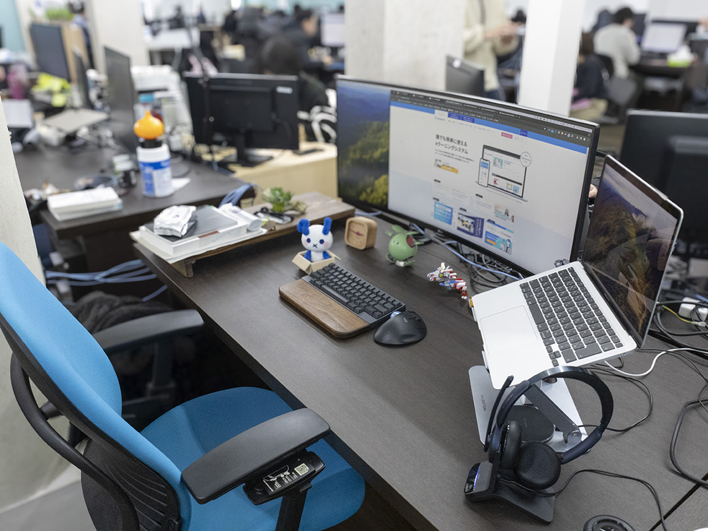 ドメイン駆動設計に精通しており、社内でのDDD導入を推進している末廣氏のデスクはミニマルな雰囲気です。