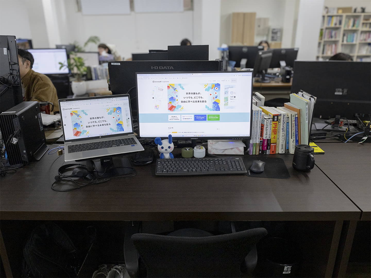 社内有数の競技プログラミング好きで、各種コンテストに精力的に参加している松永氏のデスクはこちら。