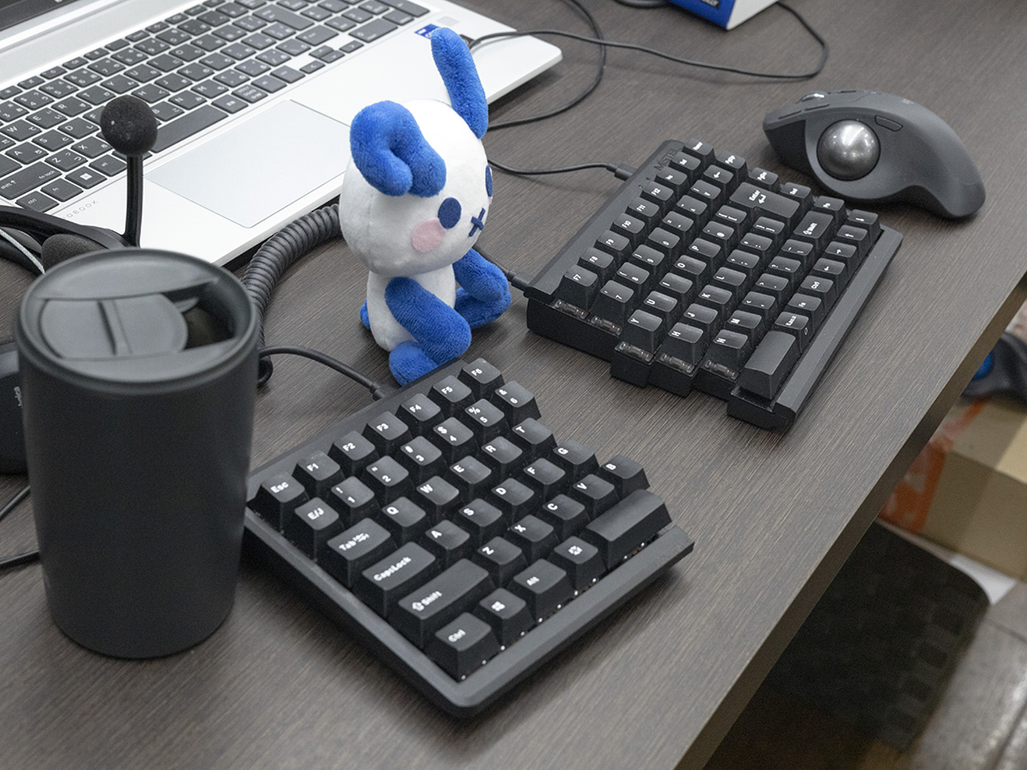 元々トラックボールはSW-M570を使っていましたが、ハイ・ファイブでMX ERGOにグレードアップできて満足しています。分割キーボードはあまり肩がこらないのと、ホームポジションの改善になるのがいい所です。本当は青軸のほうが好みなのですが、周囲に配慮して会社では静音赤軸を使っています。次はオフィスチェアを購入したいと思っています。