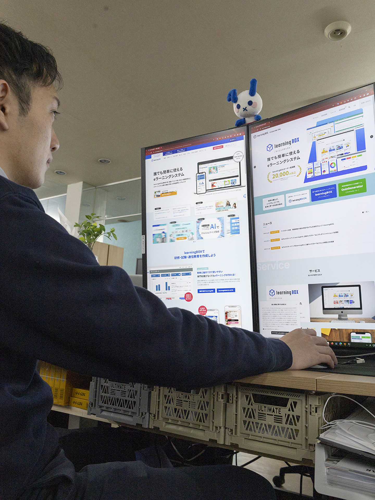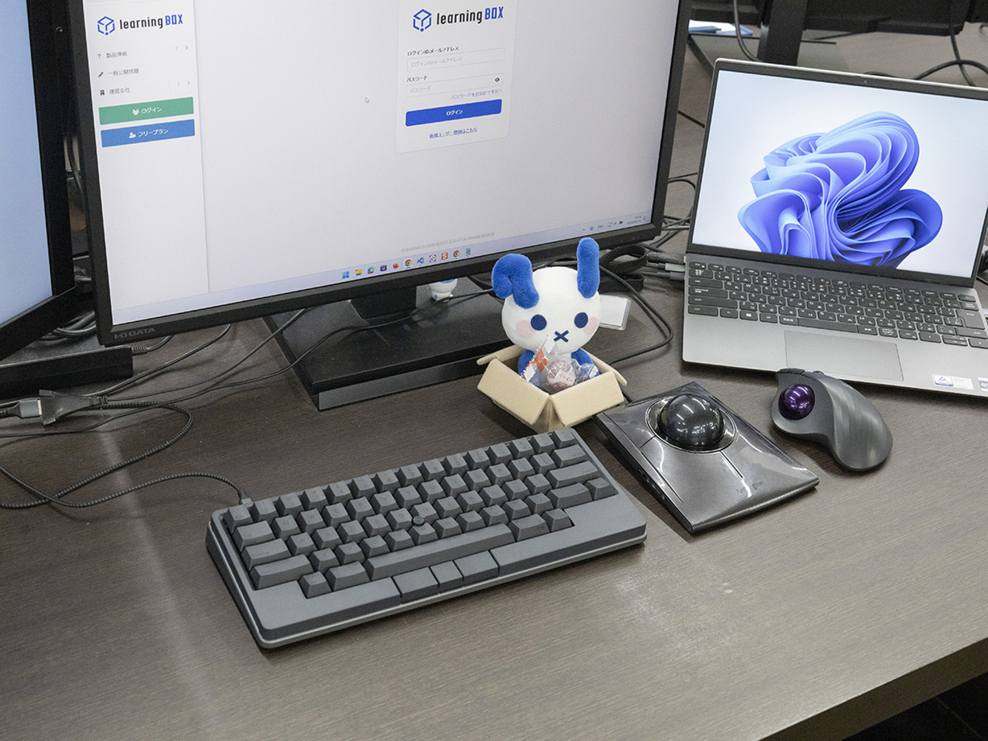 また、デスクの周りで弊社の企業キャラクター「はこうさ」が遊んでいますので、そちらもお楽しみいただければと思います。