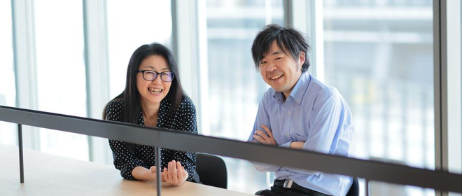 社長室がなく新卒社員の隣に取締役が座っていたり、役職名ではなく名前で呼び合ったり。上下関係ゼロのびっくりするほどフラットでゆるい雰囲気が持ち味です。忌憚なく意見を出し合える関係性だからこそ、長所や個性が光り、雑談からの新設部門立ち上げや新規プロジェクトへの発展も日常茶飯事。