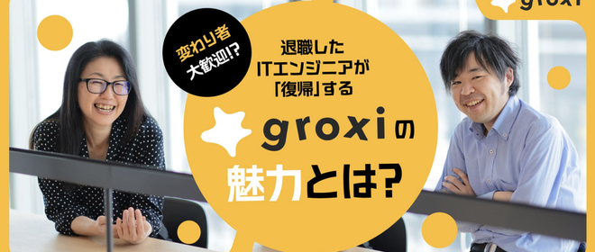 まだ何者でもない石ころでも、 自分の才能を諦められない、打たれ強い石は好きだ。 groxi(グロクシー)は輝きだす前の原石を 掘り当てて、磨き上げることに一生懸命な会社だ。 開花させた才能の数は200以上。 ここで腕に磨きをかけたエンジニアたちは、 努力が裏切らないことを誰よりも知っている。 だからこそ私たちは言いたい。 努力を裏切らない会社を選ぼう、と。 次世代のITエンジニアにとって正しい育成環境は、 キミの能力を効率的に、たくましく磨き上げてくれるはずだ。