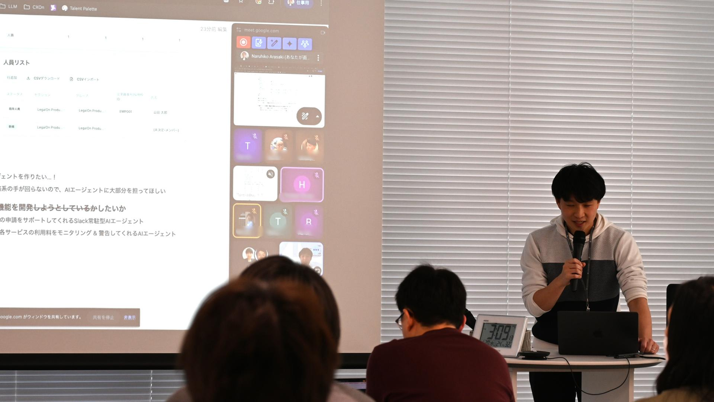 初回キックオフには、各プロダクトからメンバーが登壇し、各プロダクトで実践しているAIエージェント開発の内容を発表していただきました。多くは語れない内容が多いのですが、弊社の雰囲気を知っていただけたら嬉しいです。