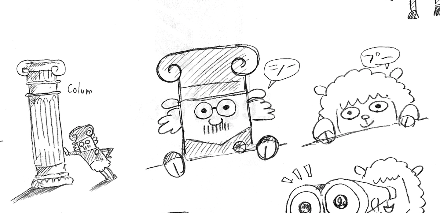 また、「親しみやすい」「使いやすい」サービスにしたいという気持ちを込めた、キャラクターやロゴデザインもポイントです。キャラクターは社内のデザイナーが作成してくれたのですが、羊にしたのは「モコモコしていてかわいいから」とのことでした。また、先生役のキャラクターが被っている帽子は、コラムの語源が古代ギリシャの柱にあるという一説があり、羊の角と似ているというところから着想を得ています。