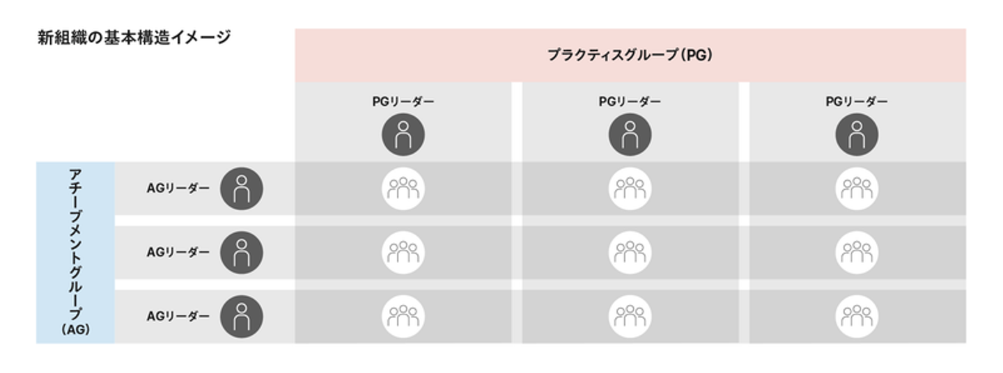 2023年4月からマトリクス構造の組織になりまして、縦串と横串のグループに分かれています。(下図参照)
