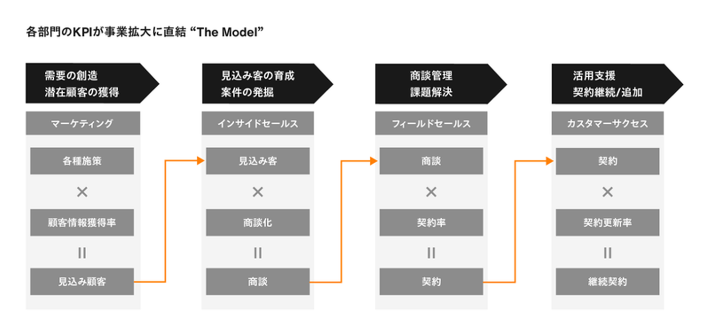 当社は「THE MODEL」型の営業組織となっており、営業プロセスごとに分業体制を敷いています。
