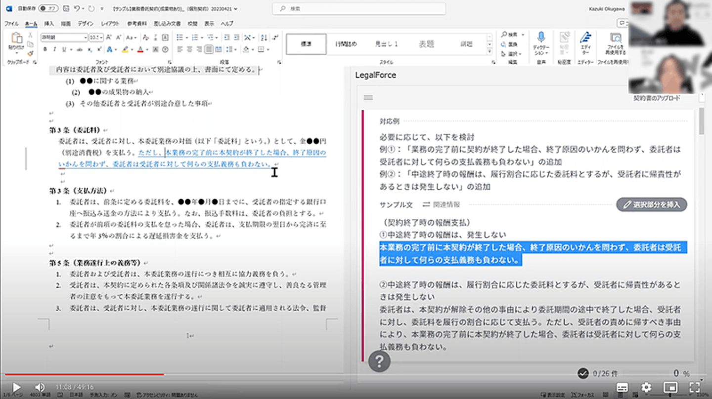 一つ目は『LegalForce』で、契約書チェックの品質向上と効率化を実現するAI契約審査プラットフォームです。
