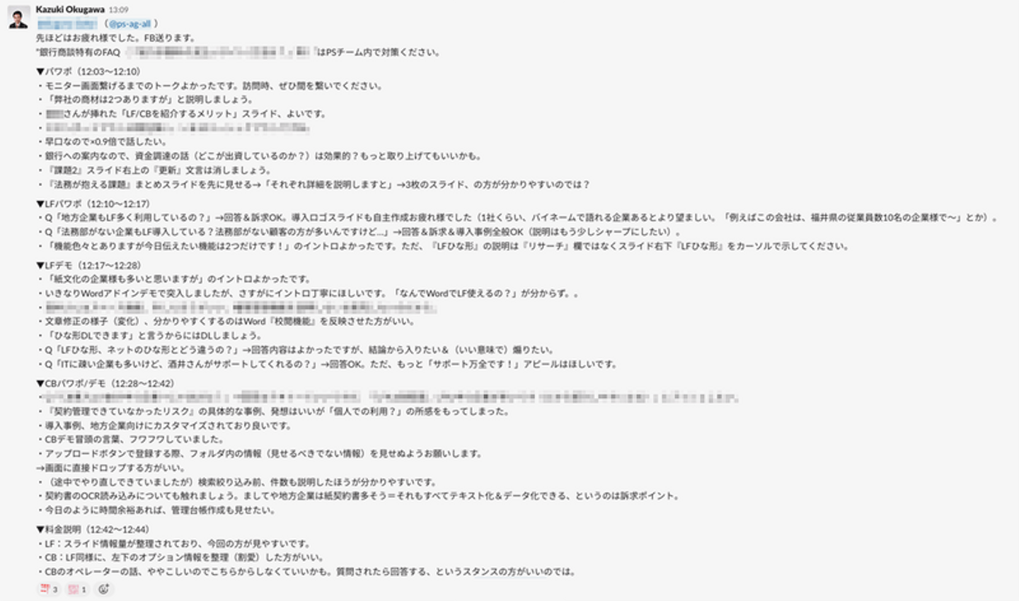そもそもLegalOnが全社的に共有を重視する社風でもありますし、「成功ノウハウを発信・共有する人が尊い」という価値観は強いです。