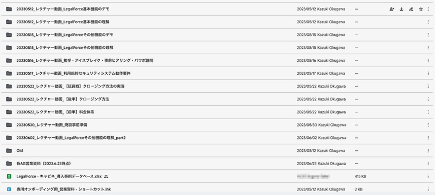 共有ドライブに格納し、新人フィールドセールスはいつでもどこでも勉強できるようにしました。