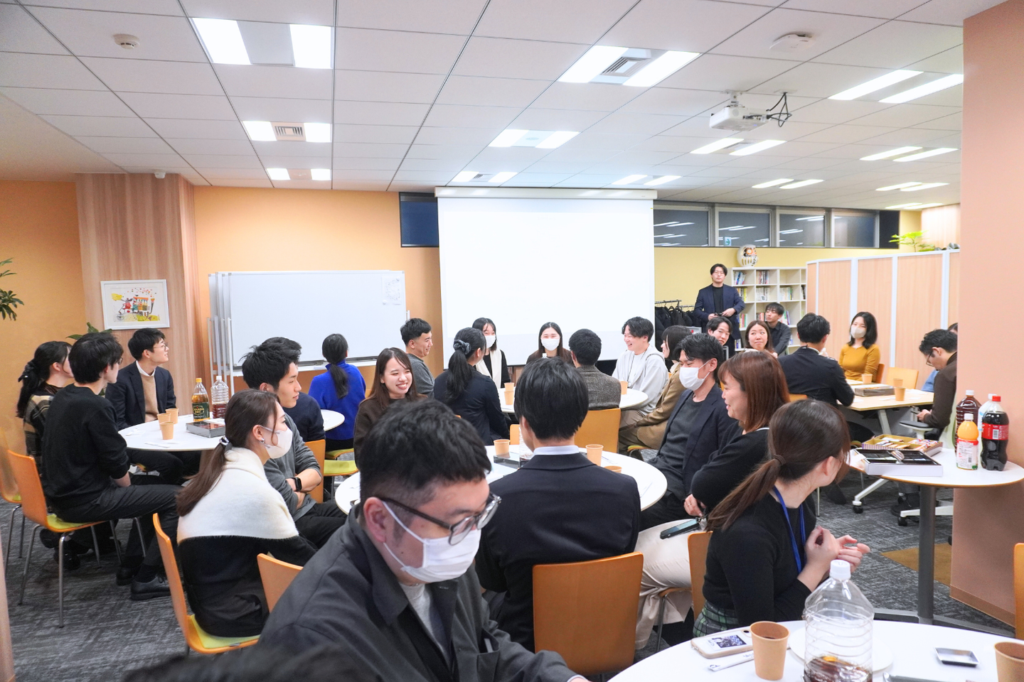 各部署メンバーが交じってテーブルにつき、和やかなムードで納会スタート!