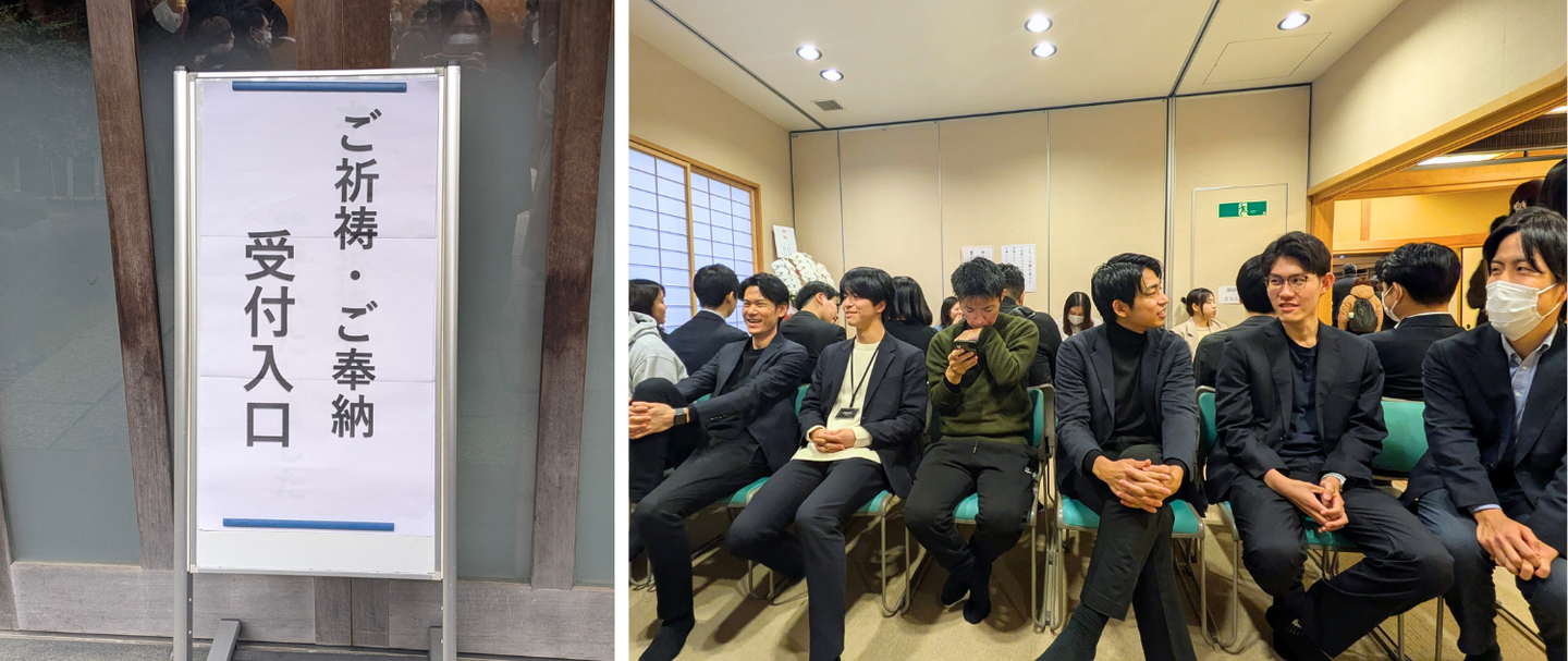 仕事運・勝負運・商売繁盛などのご利益がある神社のため、多くの企業の方々が参拝に来ていて参道は大行列。ご祈祷も他企業の方々が続いていました。