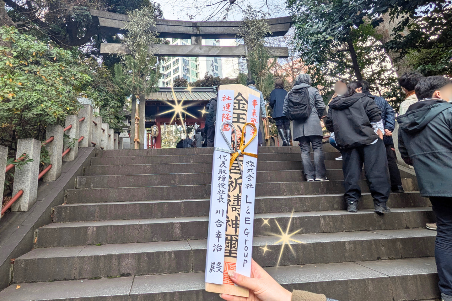 2026年の第一営業日に、出社メンバー全員で金王八幡宮へご祈禱へ!