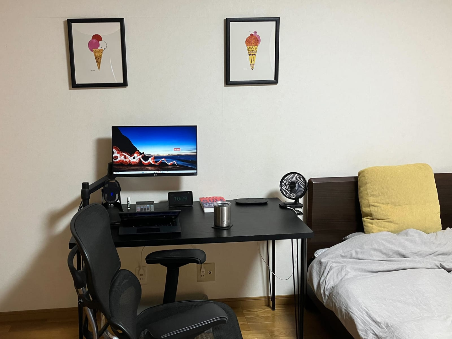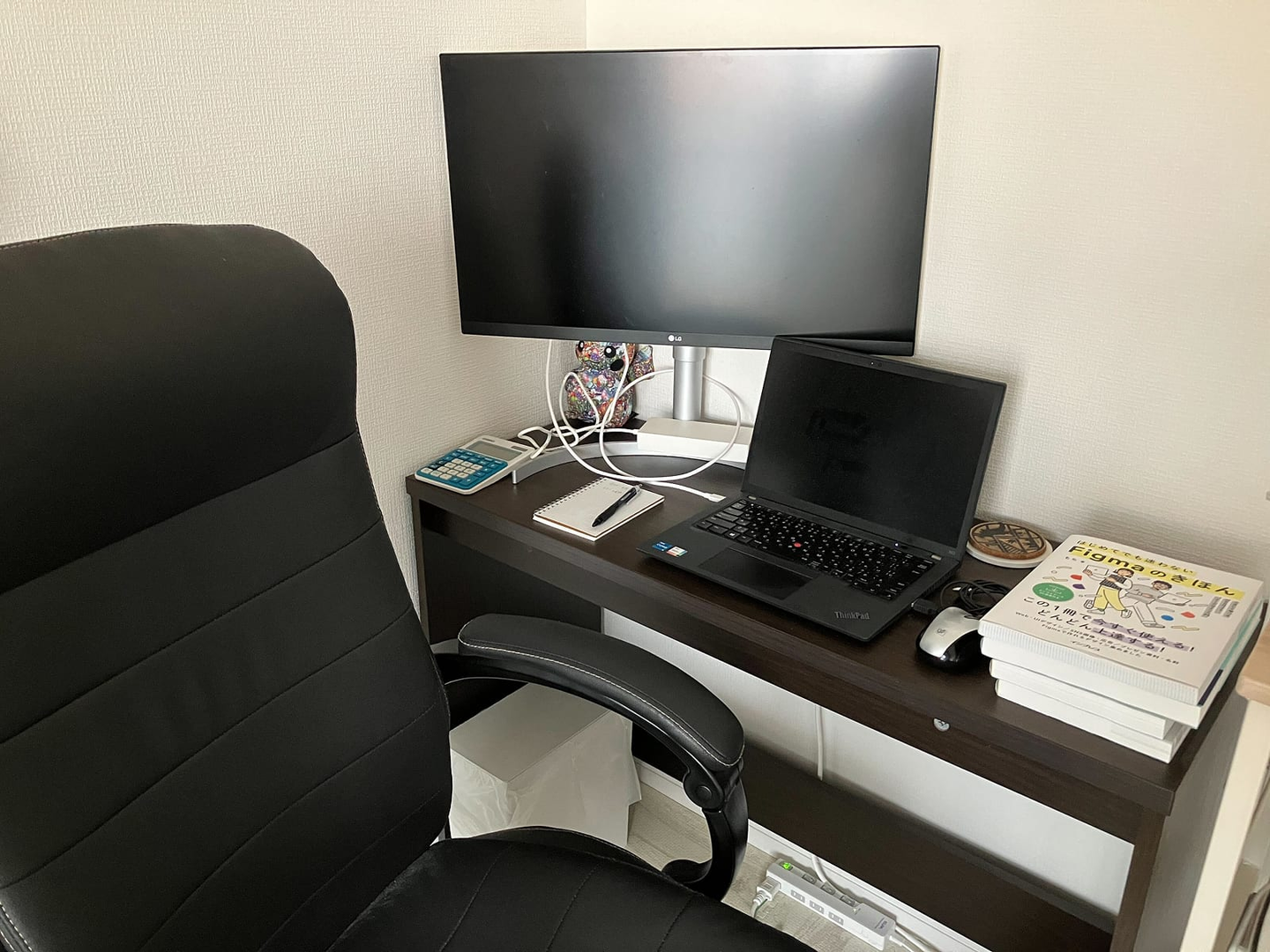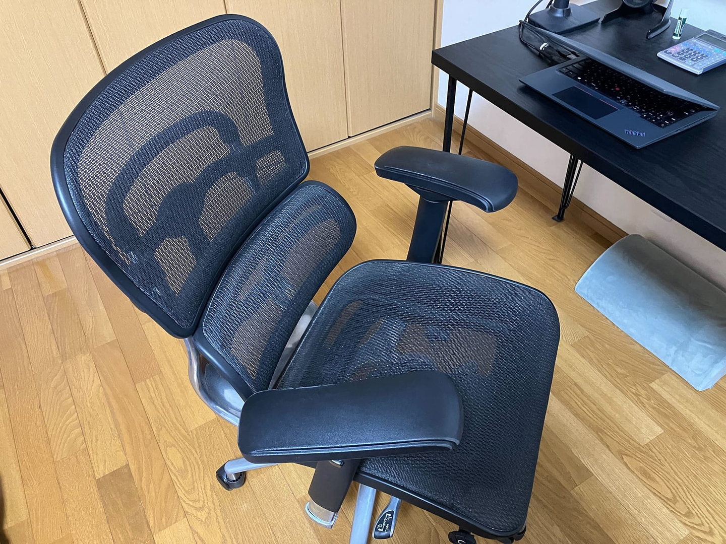 椅子はエルゴヒューマン。オフィス引っ越しの際に会社からありがたく譲り受けました。