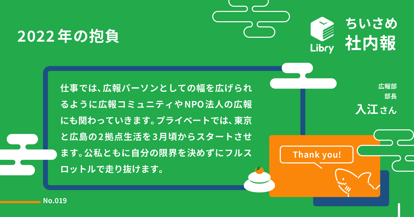 私の2021年はLibryへの転職、引っ越し、犬を飼うという大きなイベントがあり、変化の多い1年でした。年末年始は2021年の振り返りをしっかり行い、2022年は何をしたいか考える時間が多かったです。2022年は人生2度目の富士山登頂と大学生からご無沙汰しているライブをすることを目標に1年頑張ります!