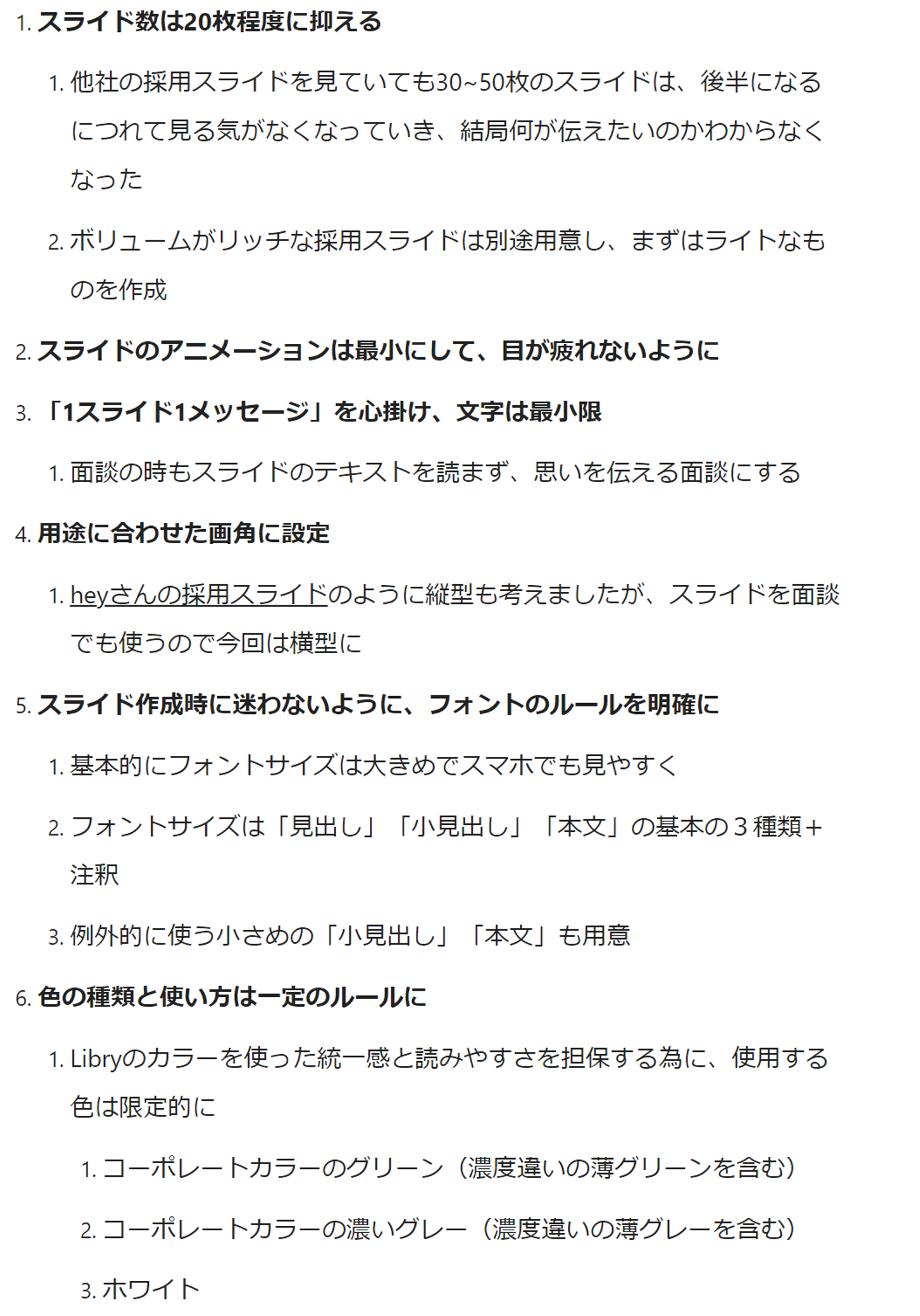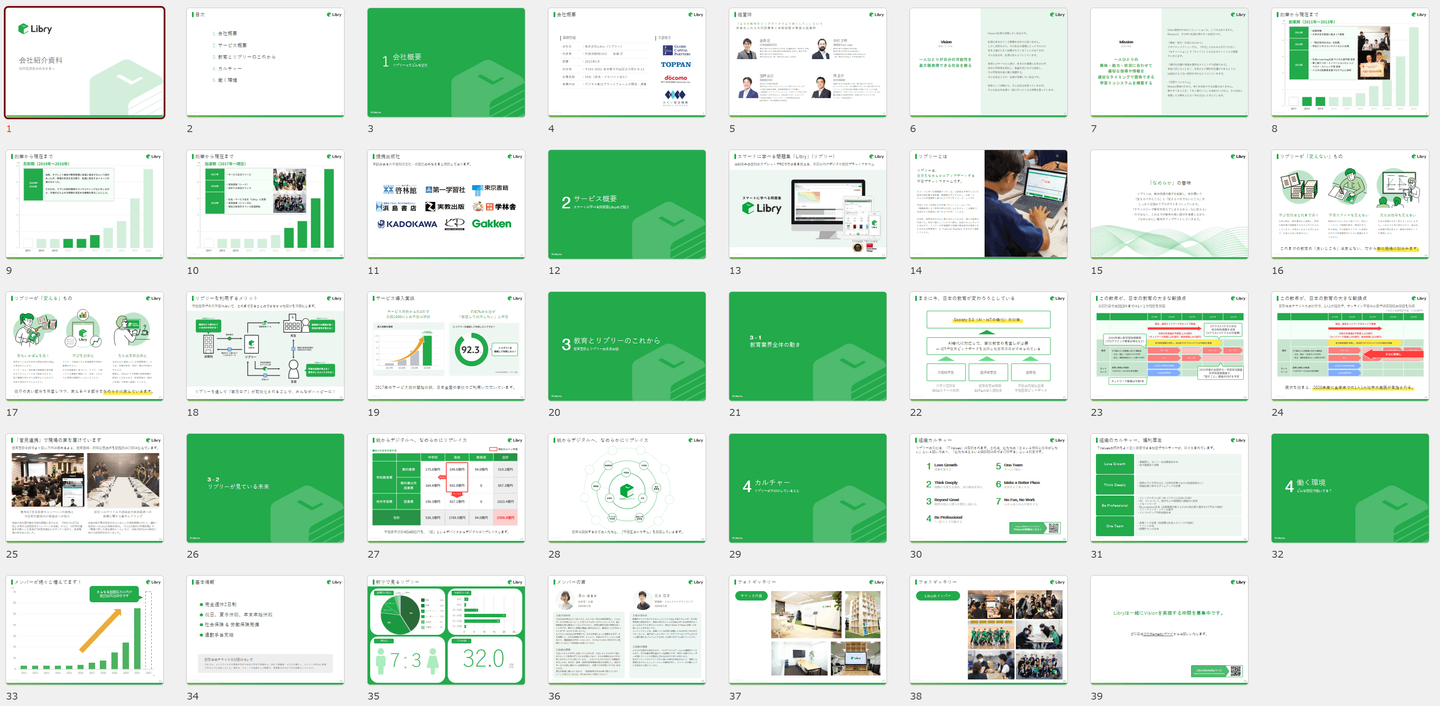 Libryに興味を持ってくれそうな人、持ってくれた人はどんな情報を欲しているのか、また他社の採用スライドではどんな見せ方をしているのかを調査できたところで、構成を検討するために必要な情報が揃いました。