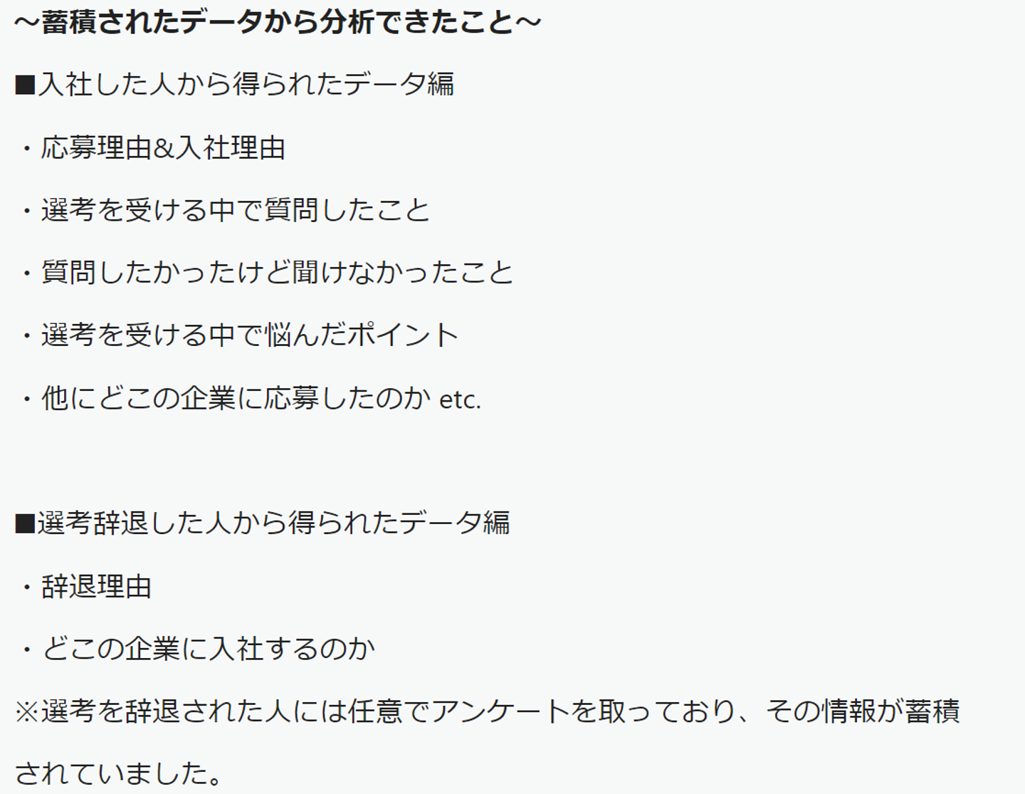 選考を受けてくれた人の声に発信すべき情報の答えがあるはずと考え、2021年5月に私が入社してからしっかり分析することなく、パンドラの箱の中に入っていたデータを解析することに。