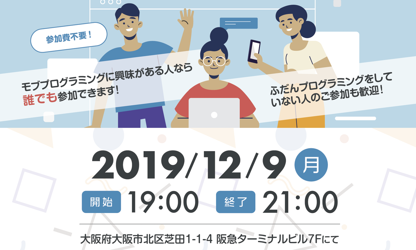 12/9(月)、大阪の梅田にて【誰でも参加OK】のモブプログラミング会をまたまた開催します!