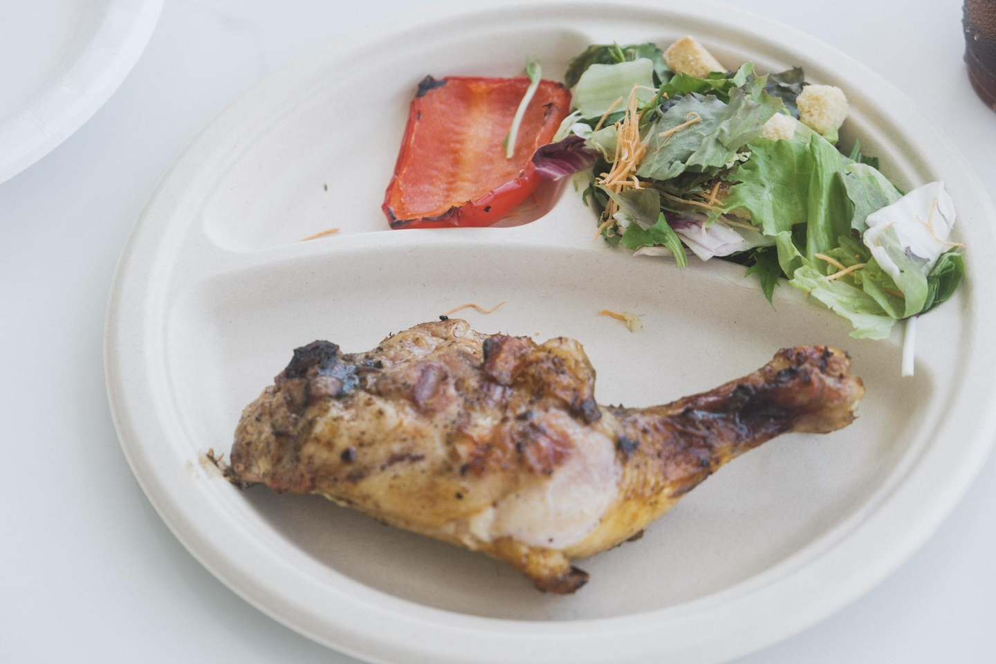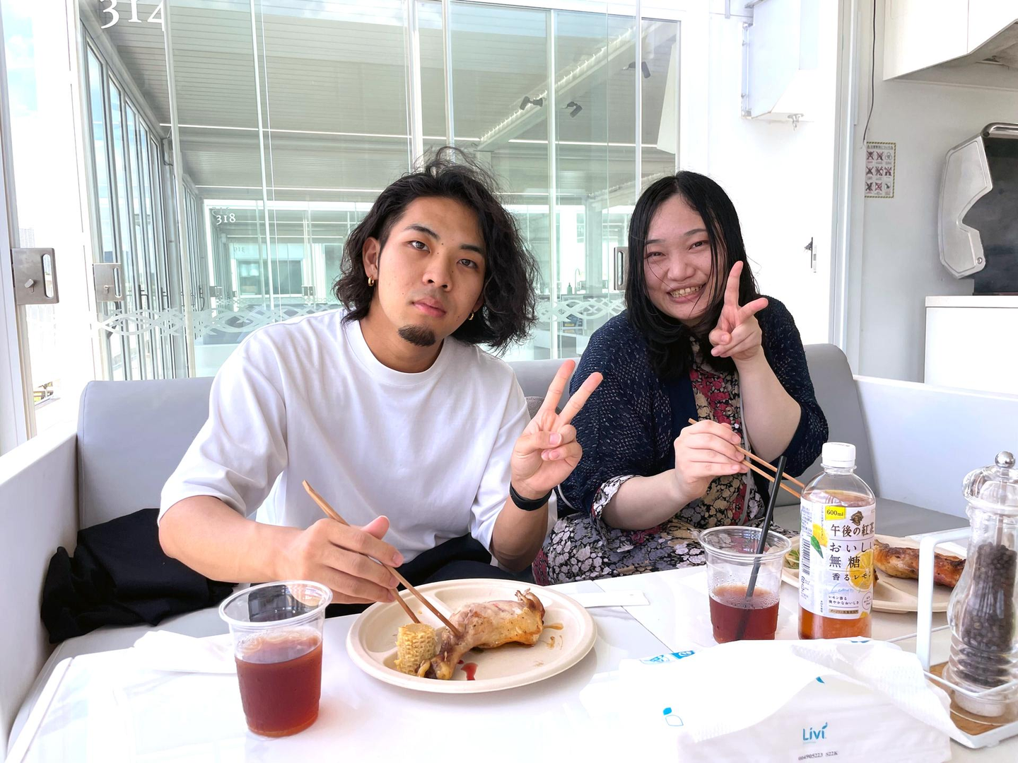 余ったチキンを2本食べる虎太郎くん。元気いっぱいの内臓!