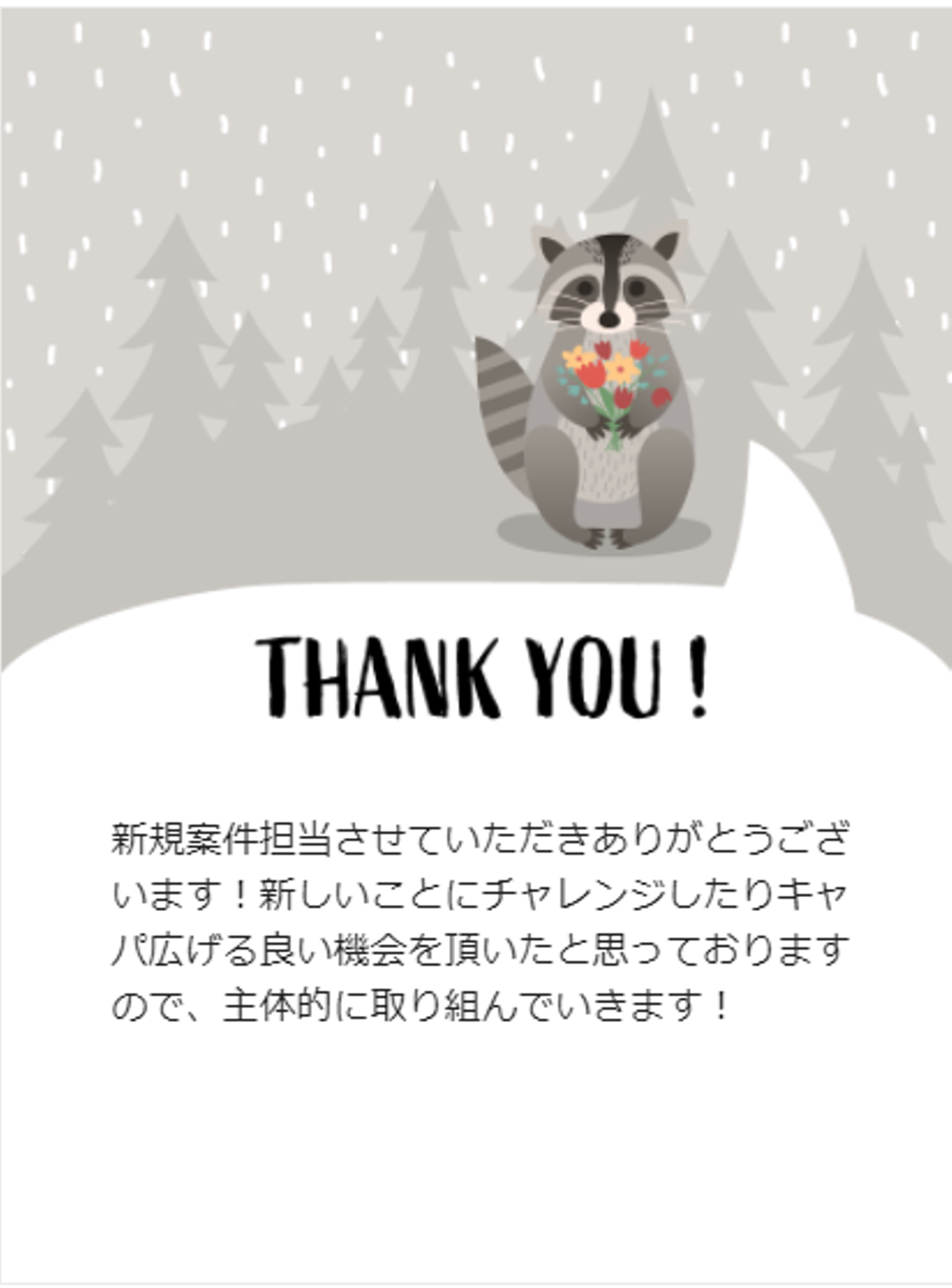また、サンクスカードの存在を思い出してもらうために、毎週ベストサンクスカードと称して、その週に送られたサンクスカードの中で内容の良かったものをチャットにて発表するようにしています。