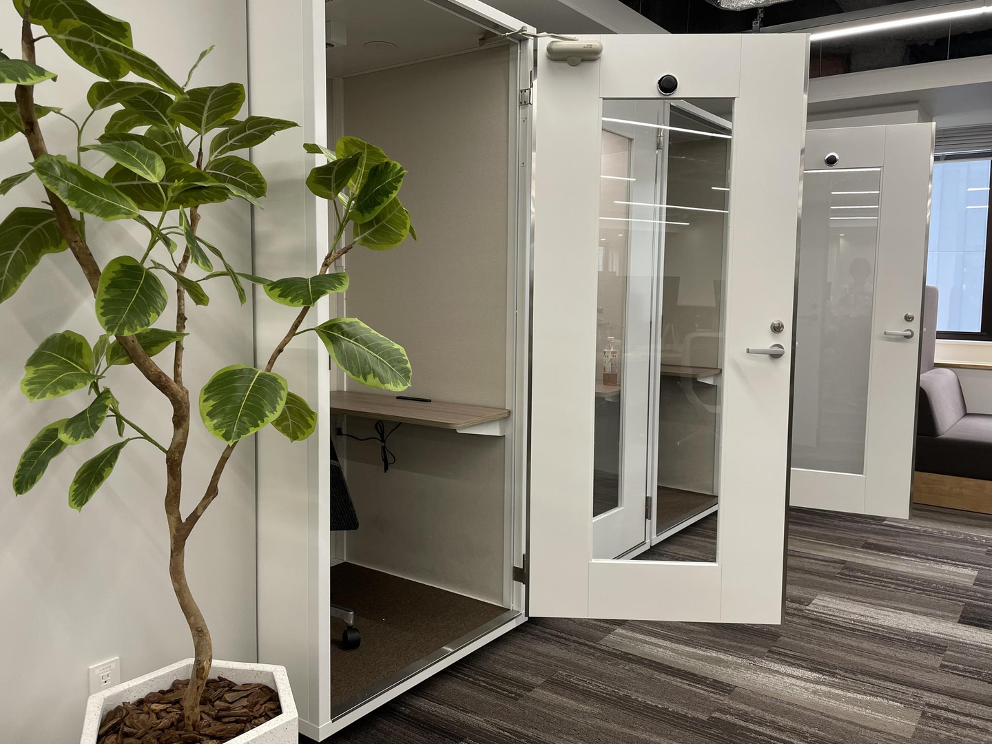 会議室はもちろん、MTGスペースや1人で使えるフォンブースもあり、快適に仕事ができる空間です。オフィスオアシスも設置し、ドリンクや軽食をいつでも楽しめます。