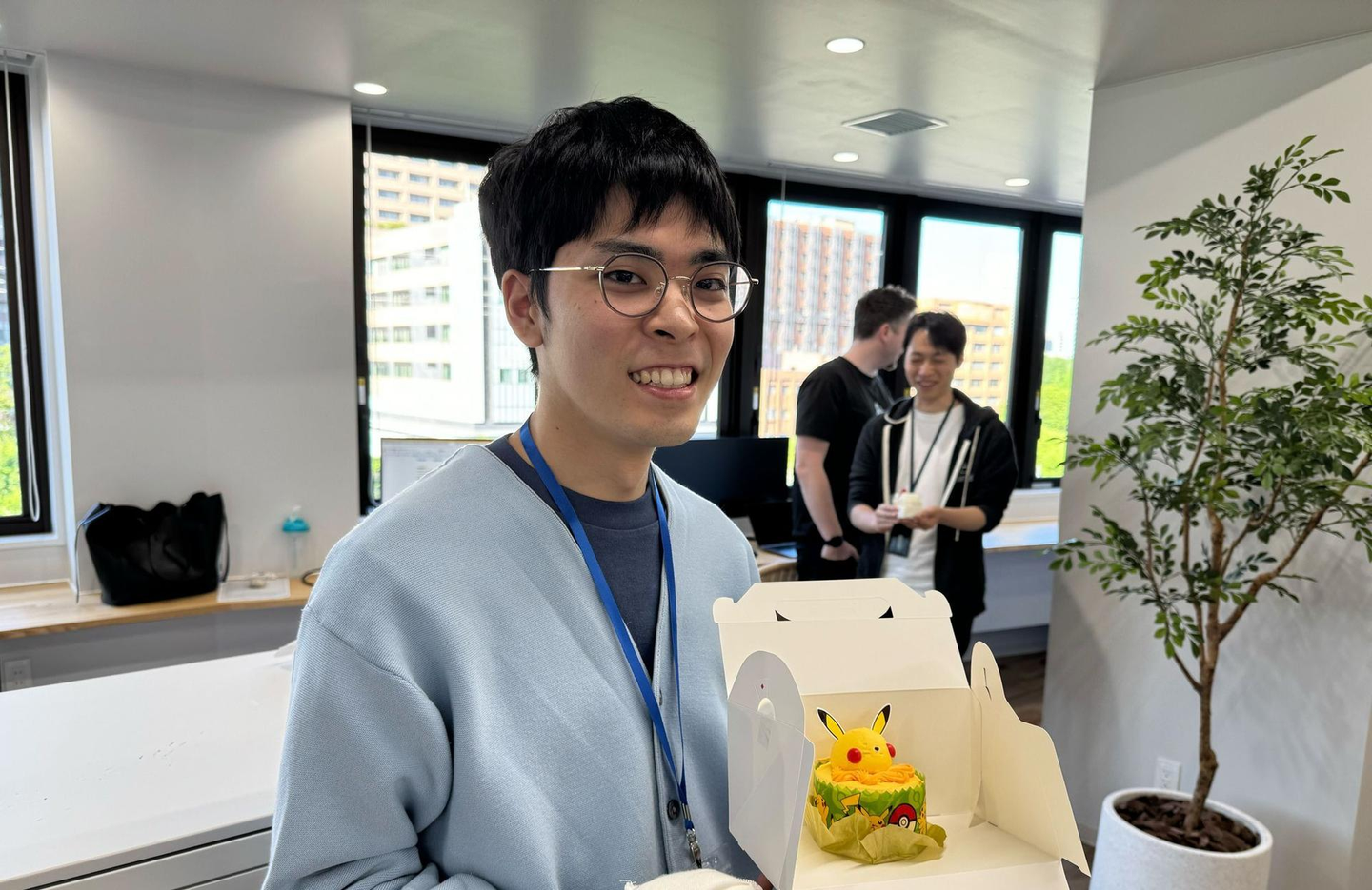 新しいオフィスで、エンジニアの青木くんのバースデーをケーキを買ってきてお祝いしました⭐️