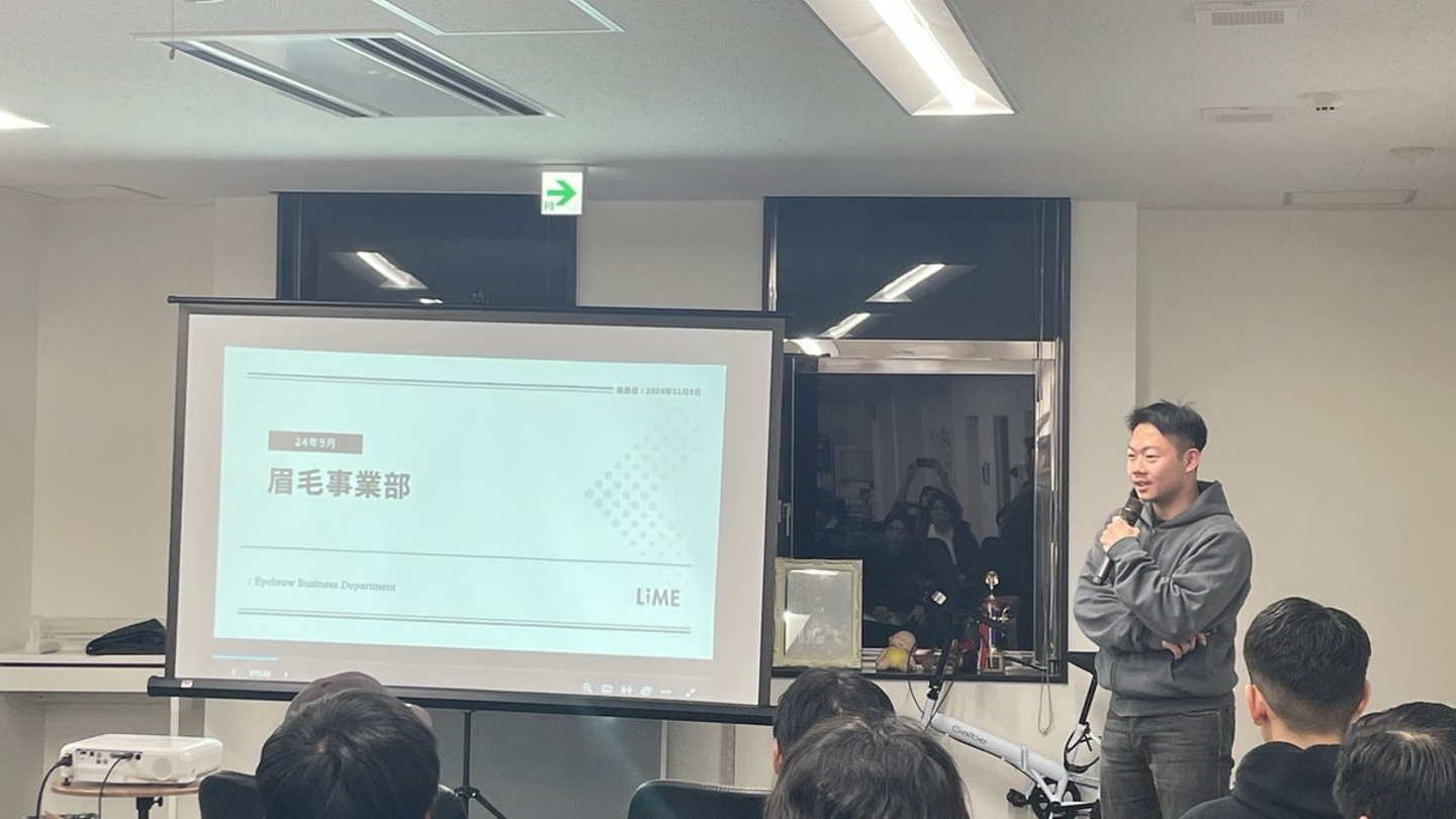 眉毛事業部の報告は「大きい目標を追いかければ、日常の小さな悩みなど気にならない!」という力強い挨拶からスタートしました!