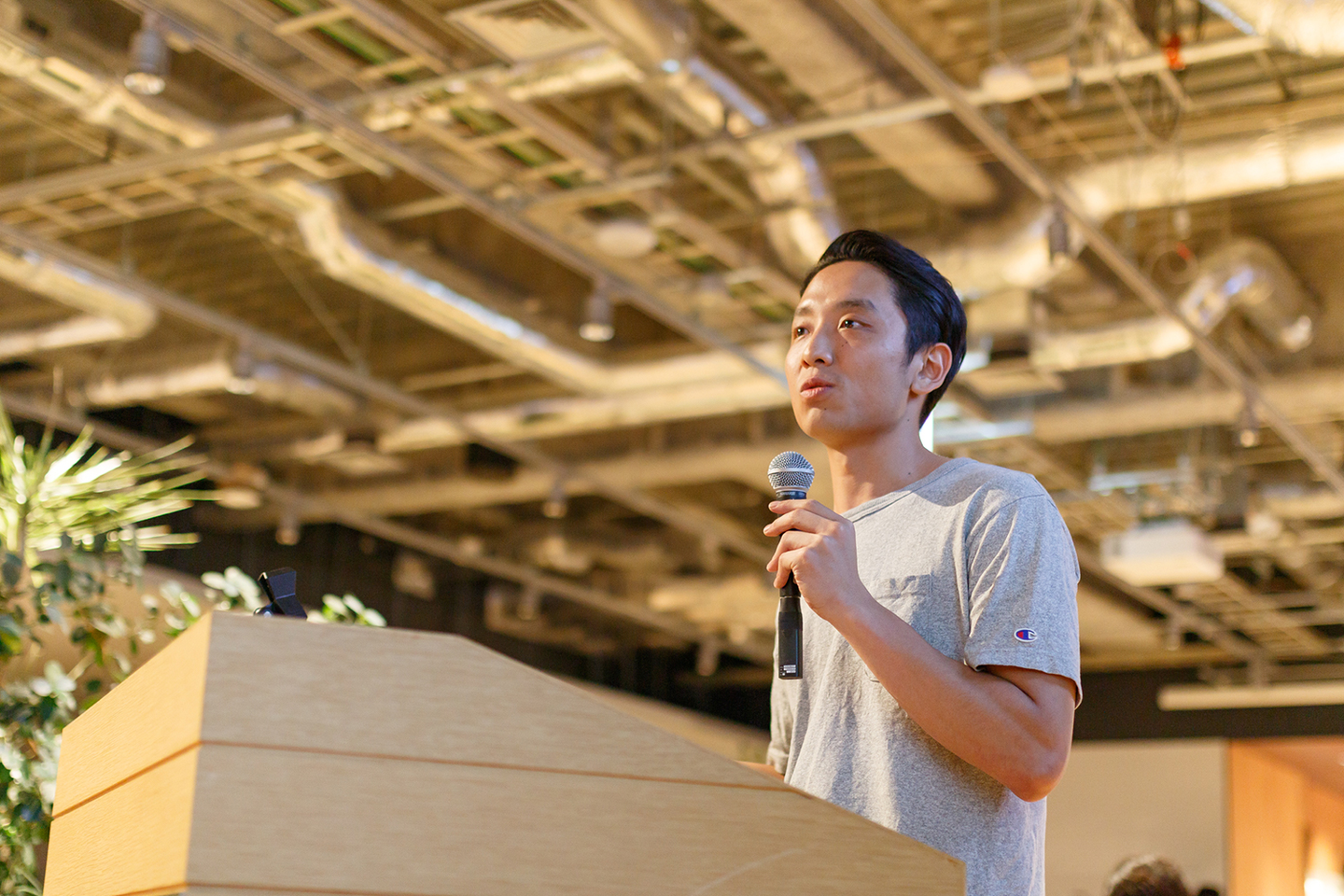 今回のイベントを主導したLINE企画センターの須藤奨から挨拶&乾杯&意図の説明がありました。