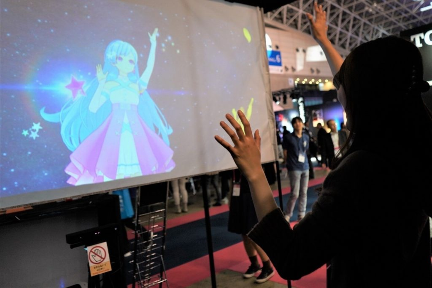 Kinect(キネクト)を使って画面上に現れる複数の星を、大きくて手を振りキャラクターを動かして消していきます。